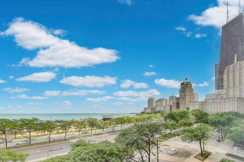 Stunning views of Oak Street Beach, Lake Michigan and the Lakefront Trail! Premier location for beach, shopping and dining. The epitome of all that's great about Chicago. This home truly has it all!! A gracious foyer leads to this impeccably updated home with Floor to ceiling windows that top the trees below. Real walnut stained hardwood throughout, designer lighting and updated baths. Large newer Chef's kitchen with quartz and high end appliances opens to the expansive living area. Primary Bedroom features cove lighting, a large walk-in closet and a western view. The spa like Primary Bath features heated floors, large shower with multiple shower heads, and double sink. All 3 bedrooms have western views and hardwood floors. The 2 1/2 bathrooms have been updated with the hall bath featuring neutral tile and a rain shower head. Recently the current owner has added alabaster sills in the living room, new ac units in the bedrooms, hand crafted cabinetry in the office and freshly painted. There is an in-unit laundry, and multiple closets for storage space. This building has exceptional security and amenities which include 24 hour doorman, valet parking in garage, pool, sundeck, exercise facilities, party room, storage unit, and on site management and engineer. HOA includes all the amenities PLUS water, parking, security, TV/Cable, exterior maintenance, lawn care, scavenger, snow removal, Wi-Fi, and Internet access. Gorgeous unit that is move in ready! Quality renovation with solid core doors and the best hardware!