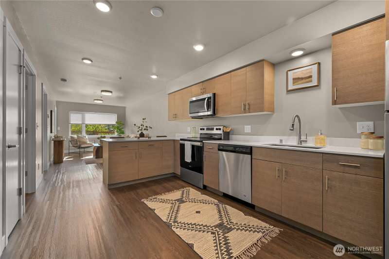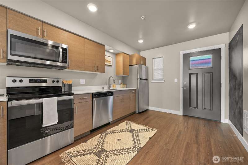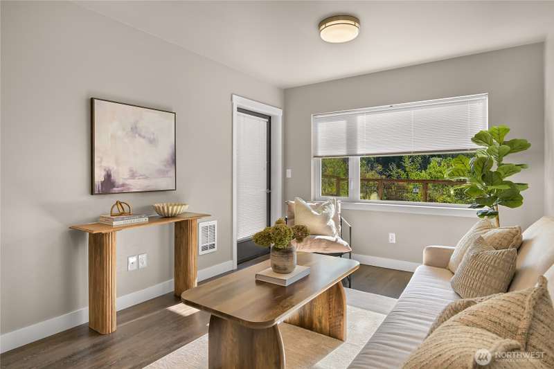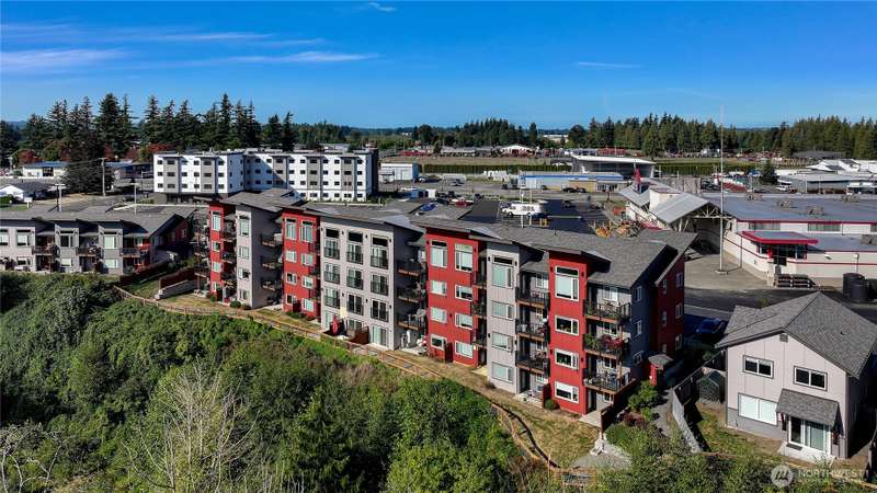 Welcome to Salmonberry Condos! This coveted 2-bedroom, 1-bath, 694 sq ft ground-floor corner end unit offers comfortable, modern living in a serene setting. Enjoy peaceful views over Fish trap Creek and surrounding trees, without sacrificing convenience. Built in 2020, the unit features high-end finishes—soft-close cabinetry, sleek stainless appliances, and thoughtful touches throughout. HOA dues cover water, sewer, garbage, snow removal, lawn care—making maintenance simple. Located steps from Lynden’s shops, restaurants, parks, medical offices & schools, this is the perfect blend of nature & downtown accessibility. Ideal for first-time buyers, downsizers, or anyone seeking low maintenance living with style.
