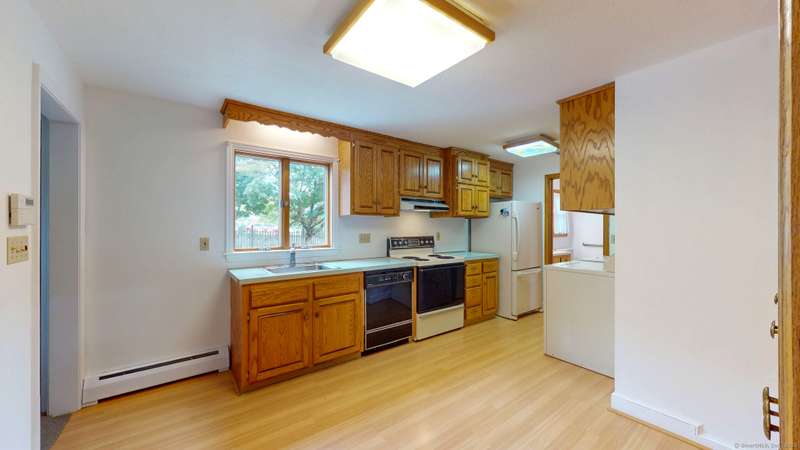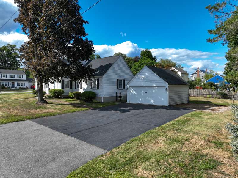 This charming home offers a spacious living room with a cozy gas fireplace, perfect for relaxing evenings. The first-floor primary bedroom features a walk-in cedar closet, and you'll appreciate the convenience of a full bath on each level. Upstairs, you'll find two additional bedrooms offering flexible space for family, guests, or a home office. The kitchen, ready for your personal touch, provides the perfect opportunity to create your dream cooking space. Outside, a fenced-in backyard is ideal for pets, while an oversized two-car detached garage gives you ample storage and parking. Practical updates include a new roof in 2024 and an automatic whole-house generator for peace of mind. Situated on a large, level corner lot in a quiet neighborhood, this home combines comfort, potential, and convenience.