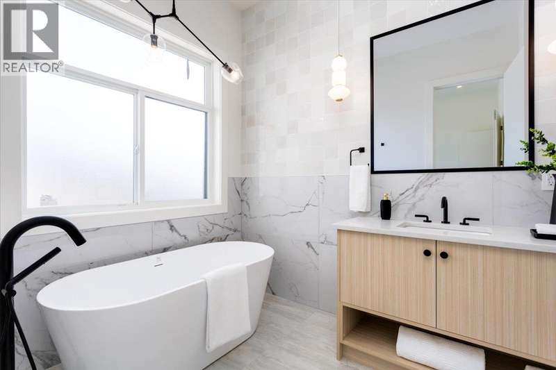 This stunning, brand new home boasts breathtaking mountain and valley views, and is conveniently located in Bluesky, making it close to the golf course, schools and many amenities. With 6 bedrooms & 4.5 baths, the open concept floor plan is perfect for modern living, with a spacious family room that flows seamlessly into the large kitchen. In addition to the main living space, this home includes a 2 bedroom legal suite with separate utilities. The interior has been crafted by award-winning Jamie Banfield Design, with high-end finishings throughout to create a beautiful and functional space. The primary bedroom is a true retreat, with a luxurious bathroom and spacious walk-in closet. Sliding doors open to the large sundeck which is perfect for outdoor entertaining or simply relaxing and enjoying the views. The attention to detail in this home is unparalleled, with high-end finishes and fixtures throughout. (id:58403)