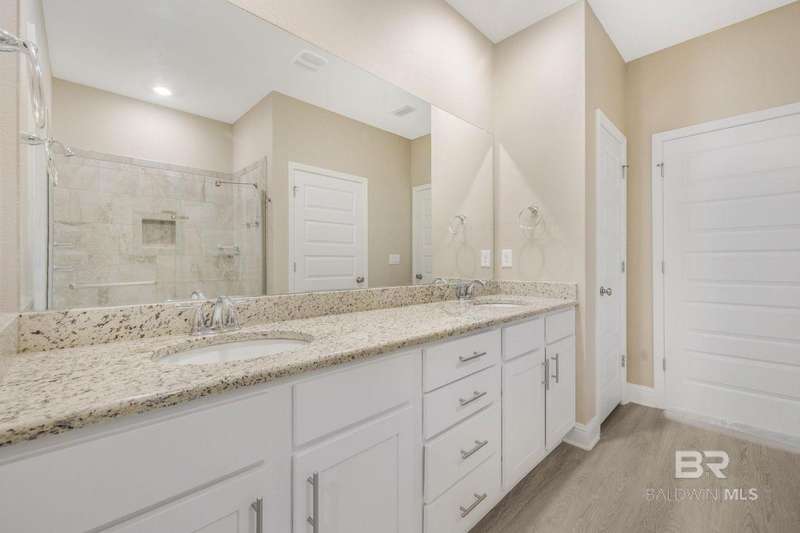 Seller offering up to $5,000 towards Buyer's closing costs or rate buy down with acceptable offer! Take a look at this impeccably upgraded Bristol-plan home, located directly across from the community pool, pickleball courts, and putting green in The Village at Craft Farms, a 55+ community! This single-level residence combines low-maintenance living with thoughtful custom touches, and the HOA even takes care of mowing and edging. Inside, a split-bedroom floor plan offers privacy and function, while the open layout showcases luxury vinyl plank flooring throughout. The kitchen features granite countertops, a tile backsplash, recessed-panel cabinetry, stainless appliances including a gas range (2023), and a new refrigerator and dishwasher (2025). The large center island includes a breakfast bar for casual dining or entertaining, and a walk-in pantry with built-ins keeps everything organized. Both the guest and primary bathrooms feature custom tile showers, while the laundry room includes a stainless utility sink and a Speed Queen washer and dryer that will convey. The primary suite also includes a spacious walk-in closet with built-in shelving. This Gold Fortified home offers epoxy flooring in the garage, front entry, and screened patio, which overlooks the fully fenced backyard?an ideal spot for relaxing or hosting guests. A water filtration system (2025) adds to the home?s convenience and comfort. Keyless entry, a Ring doorbell, and an ADT panel with cameras and sensors (convey with the home) enhance both security and ease of living. Located just minutes from shopping, entertainment, the sugar-white beaches of the Alabama Gulf Coast, the new ICW boat launch, and Gulf Shores International Airport. Optional membership to Craft Farms Golf Club is also available, providing access to 36 holes of Arnold Palmer designed golf and additional recreational amenities. Schedule your showing today! Buyer to verify all information during due diligence.