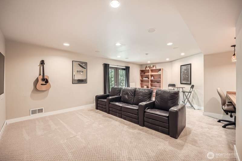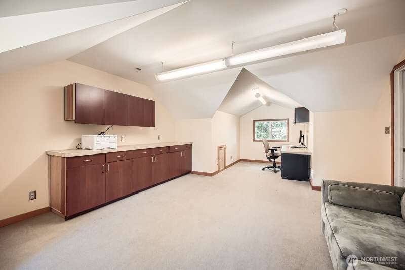 This Beautifully Maintained Shorewood Daylight Basement Rambler w 2100 SF Shop is a Rare Find! 4 bed, 3.5 baths home is just shy of 3,000 sf and features generous bedroom/living spaces including a 325 ft primary bedroom with a cozy gas fireplace. Lower level offers a 300 sf rec room with theater seating that leads out to the multi-level deck in the back yard. Additional features include original red oak floors, integrated sound system, heated floors in baths, Rinnai tankless water heater and attached two car garage. Behind the home is a 2,100 sq ft two-story detached shop that includes a 400 sf ADU and office space upstairs. NOTE:Proposed zoning changes per Seattle One unlocks potential to subdivide into separate lots in the future!