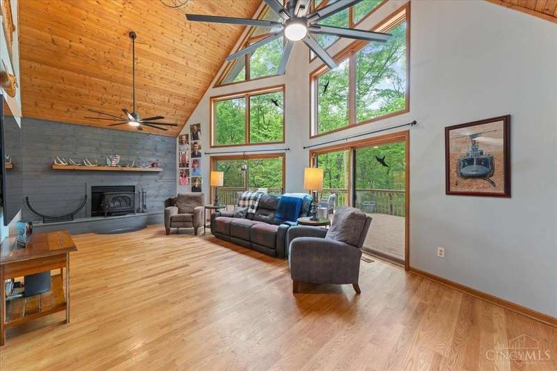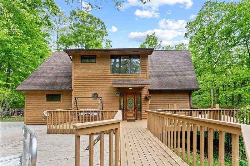 Incredible 5 Bedroom 3200sqft+ Chalet Style Home on 15 Acres Tucked Amongst the Trees in Clinton Massie Schools. Breathtaking 2 Story Great Room with Fireplace Ensures Year Round Enjoyment & Views of This Tremendous Property. Updated Kitchen with Solid Surface Counters, Stainless Appliances, Gas Cooktop & Recessed Range Vent. Awesome Master Suite with New Bath, Walk-In Closet & Private Loft. Finished Walkout Basement with Rec Room, Full Bath & 2 Additional Bedrooms. Massive Wrap Around Deck Overlooks the Woods & Peaceful Stream Below. Woods Consist of Big Mature Hardwood Timber & Subtle Stream Full of Fossils w/Waterfall. Naturalist & Hunters Paradise Alike, Privacy Galore & Spectacular Setting You Must See to Appreciate, Located Directly Across From Camp Joy on the Todds Fork River Valley. Mountain Feel w/Modern Amenities All in Warren County, Less than 15 Minutes to I71!