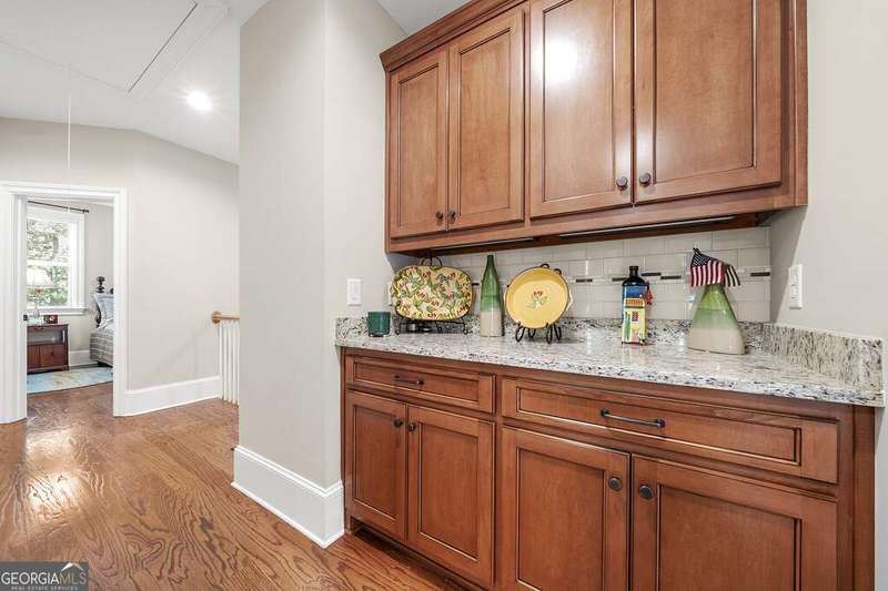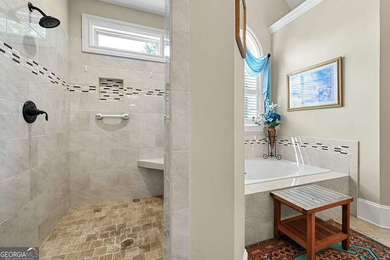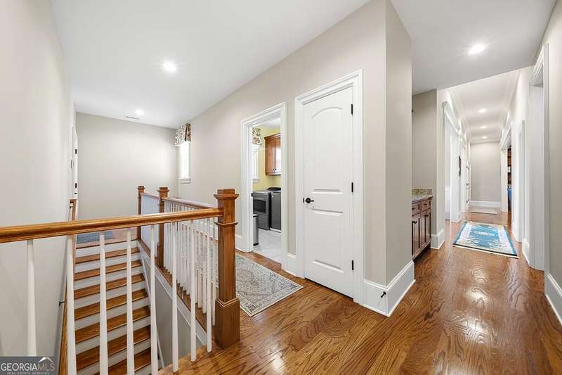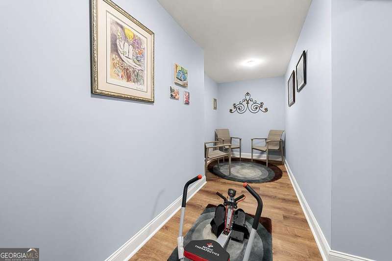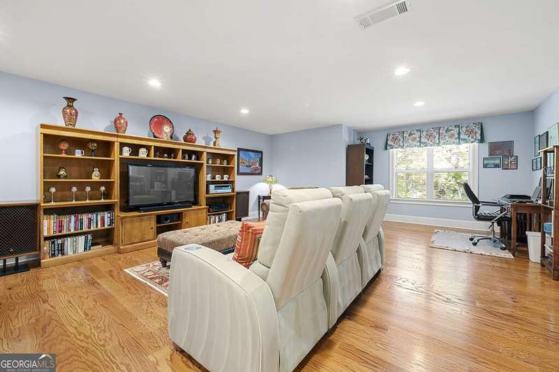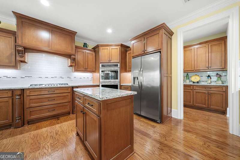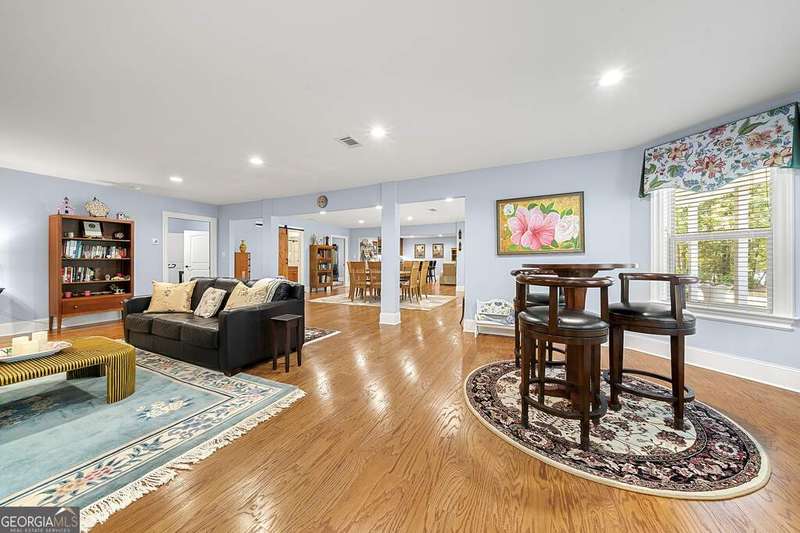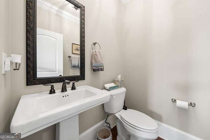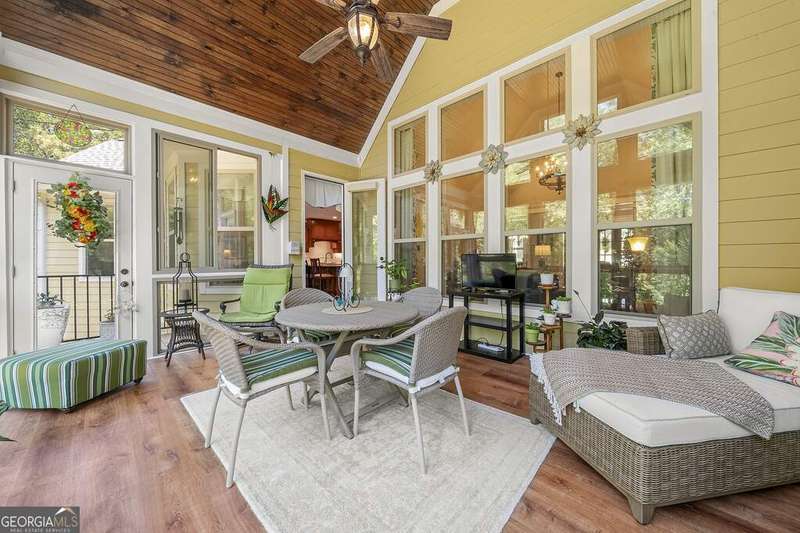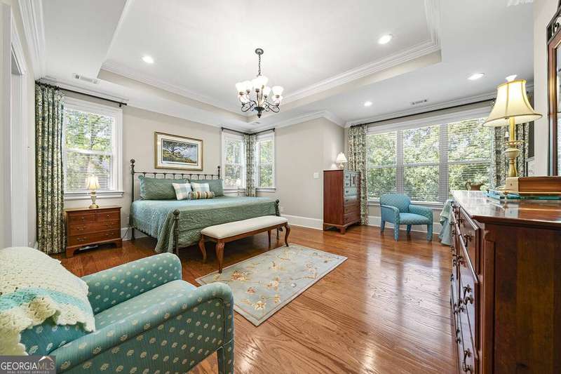 Tucked away at the end of a quiet cul-de-sac, this beautifully maintained ranch with a finished basement offers 1.22 acres and 200 feet of serene lakefront living. With approximately 6,556 square feet, including both finished and unfinished space, this home combines timeless craftsmanship with modern comfort. A flagstone front porch welcomes you inside through elegant wood and glass double doors into a light-filled foyer. To one side, a formal dining room features a coffered ceiling and wainscoting. On the other side, a versatile flex room provides space for an office, sitting room, or reading nook. The vaulted family room, complete with fireplace and built-ins, flows into the kitchen, which is designed with custom cabinetry, stainless steel appliances, a double oven, gas cooktop, pull-out spice racks, walk-in pantry, and an island. The adjoining keeping room, breakfast nook, and sunroom with a stained-wood vaulted ceiling and motorized custom shades all offer sweeping views of the lake. The primary suite is a retreat of its own, with a tray ceiling, sitting area with lake view, and a bathroom featuring an expansive dual sink vanity, a whirlpool tub, a walk-in shower filled with natural light, and a generous walk-in closet. Two additional bedrooms with a Jack-and-Jill bath, a powder room, and a well-equipped laundry room complete the main floor. The finished basement extends the living space with multiple open areas for entertaining, a kitchenette, office, dining area, large full bath, and ample storage. It also includes a storm-safe sitting room and a large unfinished space with shelving for seasonal decor. An oversized three-car garage and a whole-house water filtration system add convenience, while the community amenities include two lakes, a dock, pool, tennis courts, clubhouse, and 24-hour fitness center. Bring your kayaks, canoes, or fishing gear and enjoy life on the water. Just minutes from Trilith Studios, Trilith's boutique shops and restaurants, Piedmont Wellness Center, and with easy access to Fayetteville, Peachtree City, Piedmont Hospital, and the Atlanta airport, this home offers both tranquility and convenience. Be sure to view the 3D virtual tour link to fully appreciate everything this property has to offer.