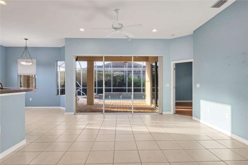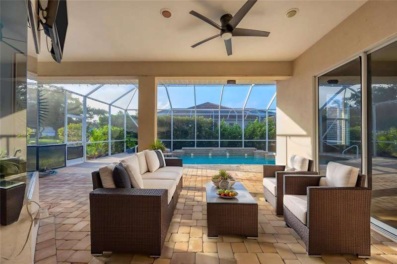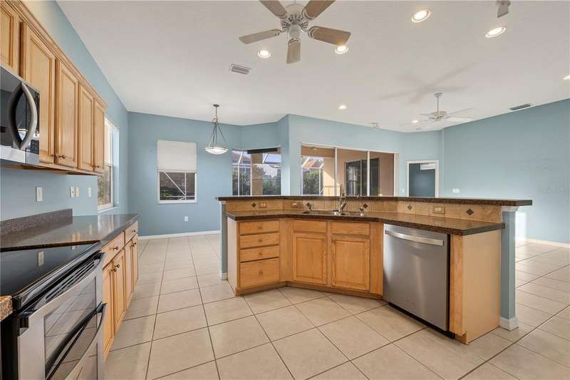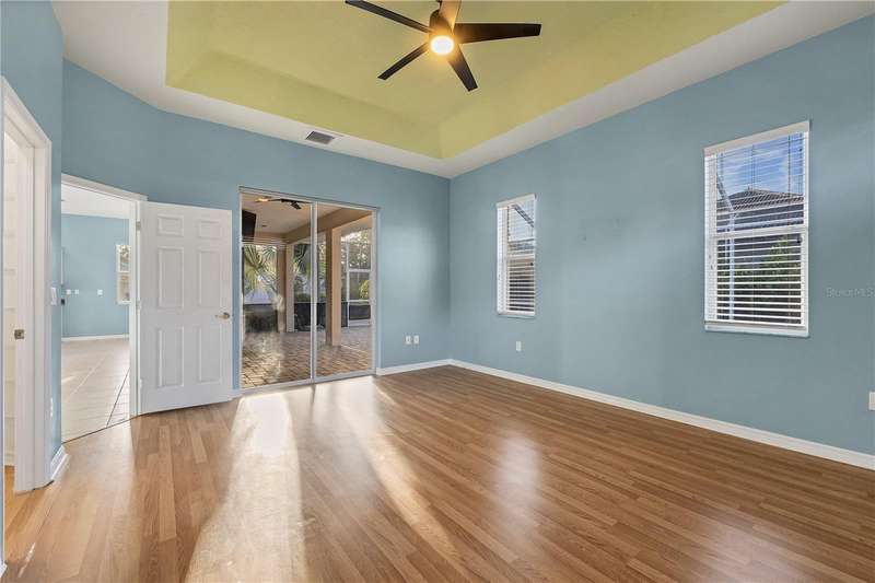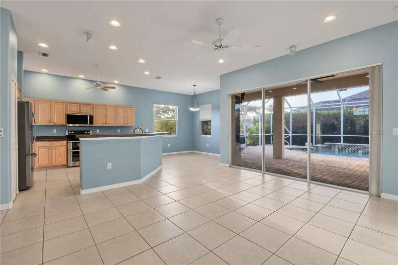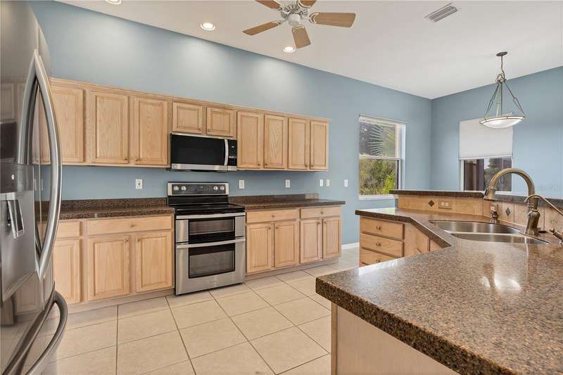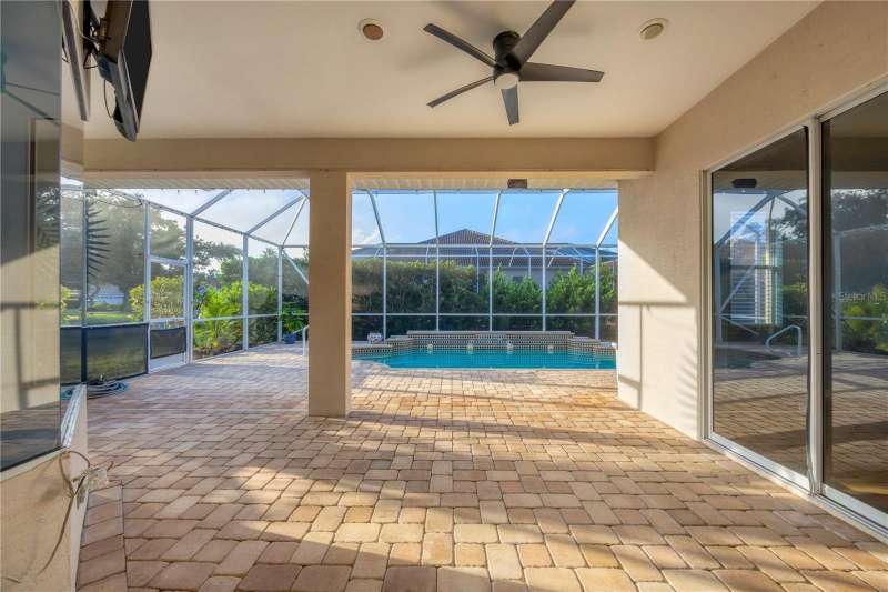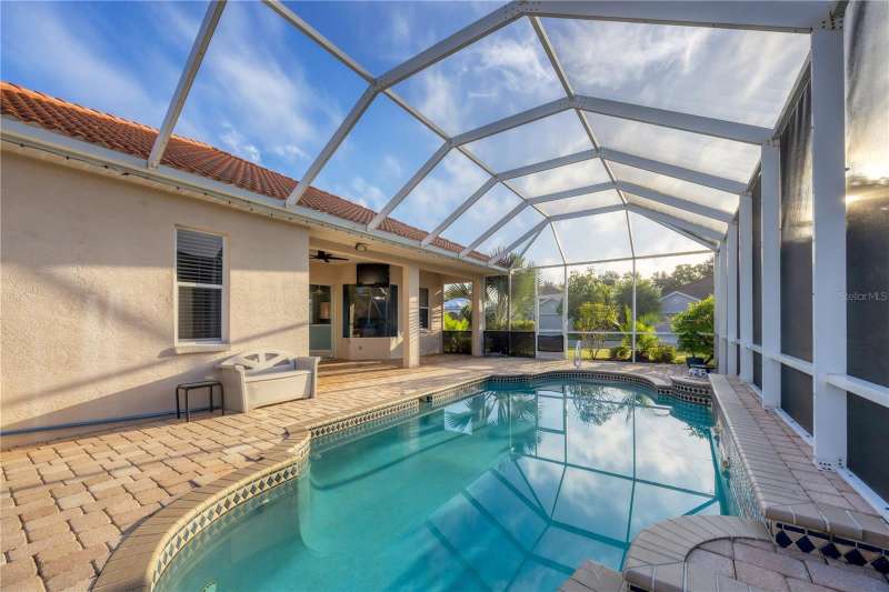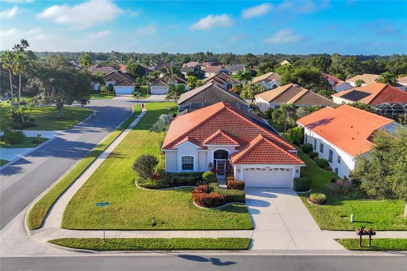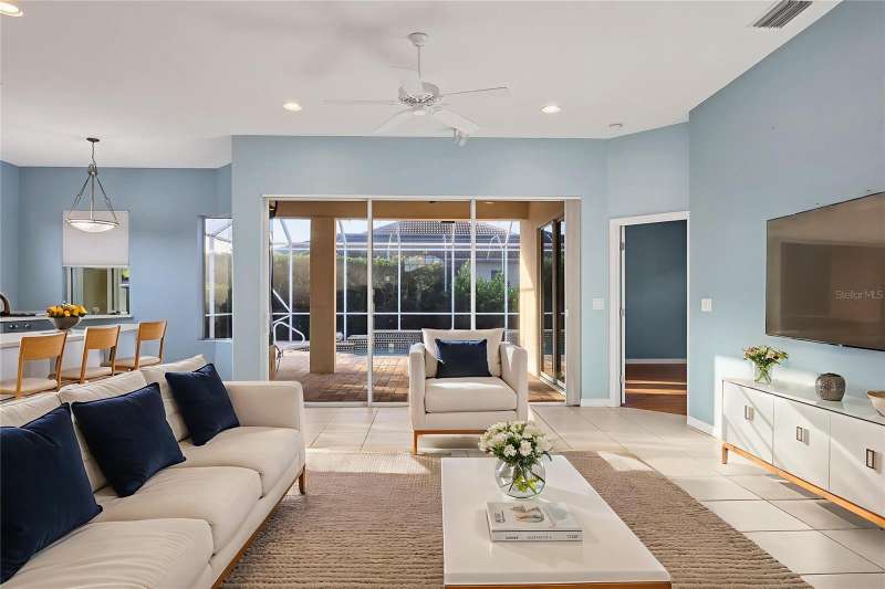 Perfectly positioned on a desirable corner lot in the charming Mote Ranch community, this exceptional residence offers the perfect blend of comfort, style, and convenience. Just moments from the community amenities, the home welcomes you with soaring ceilings, generous room sizes, and an open, light-filled floor plan enhanced by expansive windows and sliding glass doors. The kitchen, featuring newer stainless-steel appliances, flows seamlessly into the breakfast nook and family room, creating an ideal space for everyday living and casual gatherings. The family room opens directly to the screened lanai, where both covered and uncovered seating areas surround a large, solar-heated pool, perfect for year-round enjoyment and entertaining. For more formal occasions or a quiet retreat, the combined living and dining room is thoughtfully situated toward the front of the home. The spacious primary suite features a walk-in closet and a luxurious bath complete with dual vanities, a glass-enclosed shower, a soaking tub, and a private water closet. Two additional bedrooms and a guest bath are located on the opposite side of the home, providing privacy and comfort for family or guests. A well-equipped laundry room and an attached two-car garage complete this inviting home. Residents of Mote Ranch enjoy the benefits of low HOA fees, no CDD fees, and an array of community amenities, including an Olympic-size swimming pool, clubhouse, private kayak launch, dock, and scenic walking trails that wind along the beautiful Braden River. This desirable location offers convenient access to all the shops, restaurants, and activities at University Town Center, Nathan Benderson Park, Sarasota–Bradenton International Airport, I-75, Waterside Place, Lakewood Ranch Main Street, Downtown Sarasota, and the Gulf Coast’s world-famous beaches, all just minutes away.