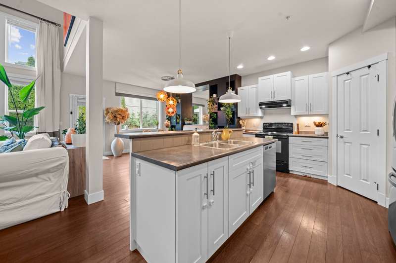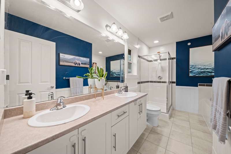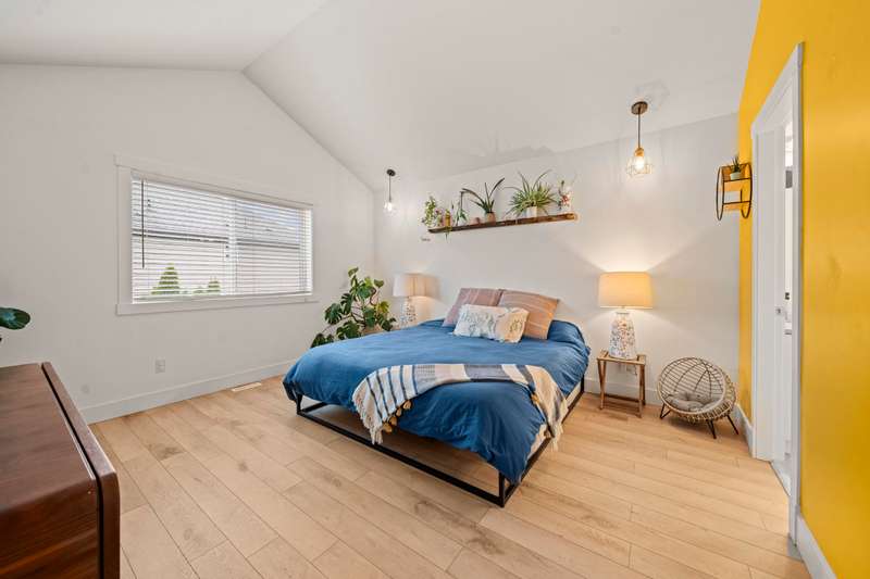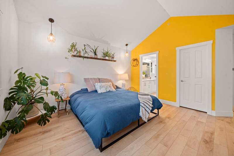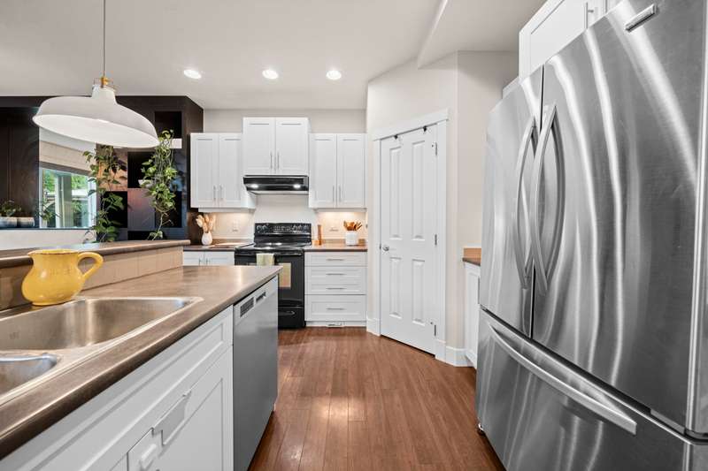 Built by award-winning Portrait Homes, this showhome sits on a 4,700sqft. corner lot, surrounded by mature hedges providing both privacy and tranquility. Filled with natural light, the open-concept main floor seamlessly connects the kitchen, dining, and living spaces. The upper floor offers a vaulted-ceiling primary suite with walk-in closet, plus a laundry room and two bedrooms. Recent upgrades include A/C, irrigation system, fresh paint, and 200-amp electrical service ideal for EV charging. The fully finished basement offers even more living space with a guest bedroom, bar, and rec room. Situated in Silver Valley, this home is perfectly located near top-rated schools, parks, hiking trails, camping, and boating. A rare opportunity to enjoy both natural beauty and modern convenience.