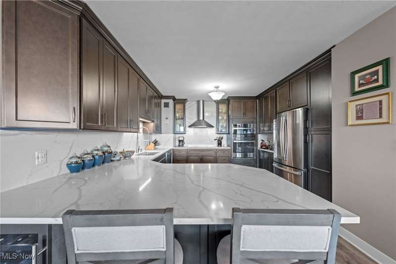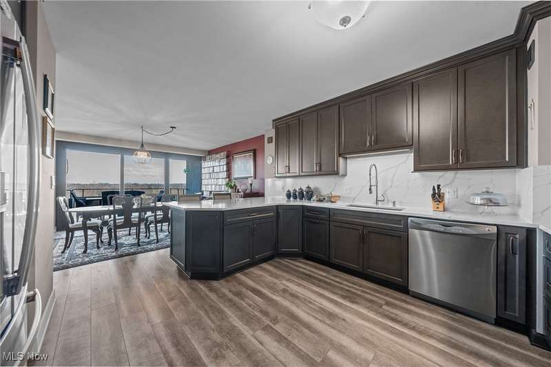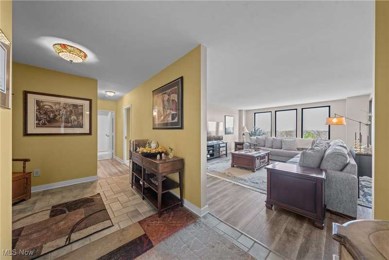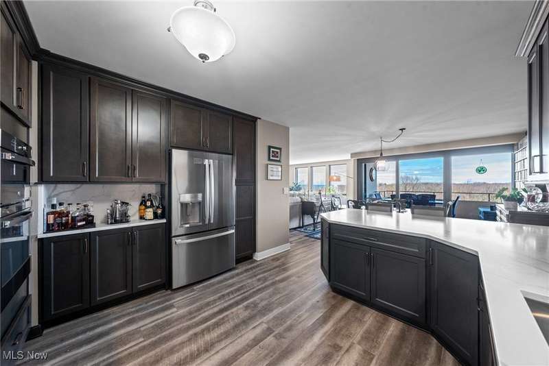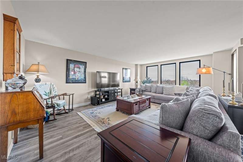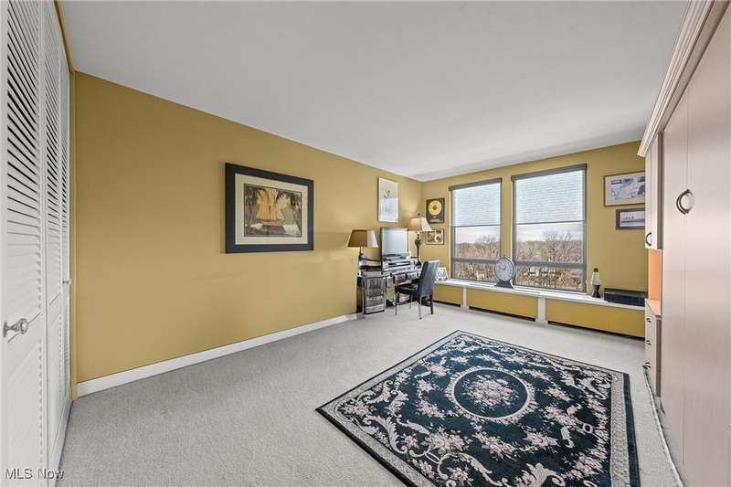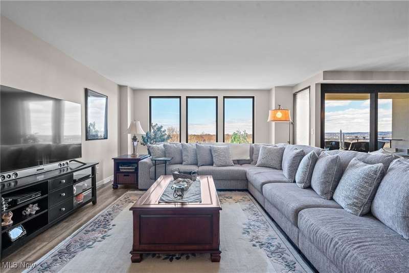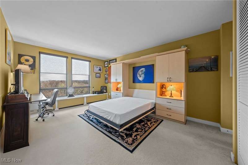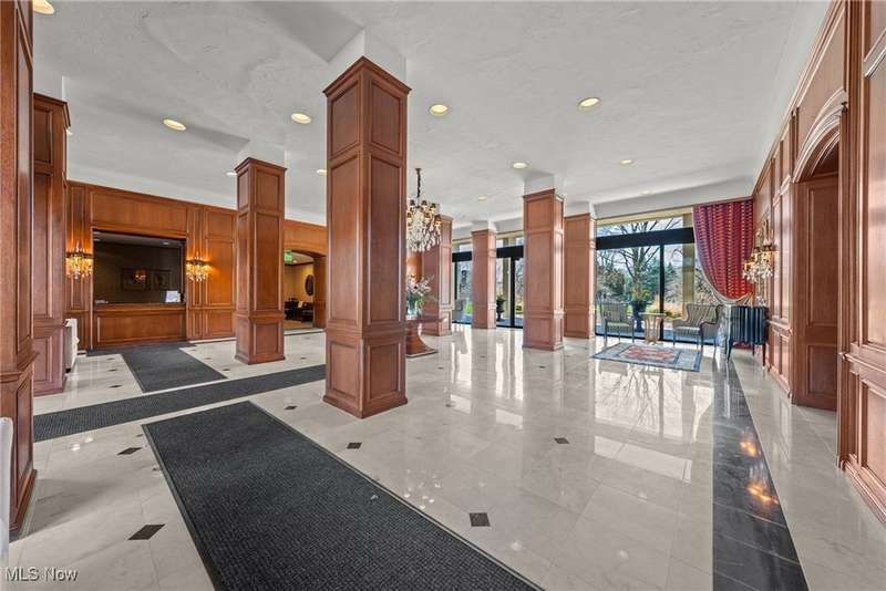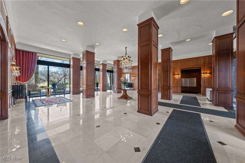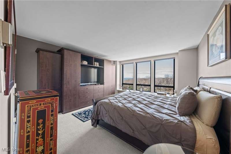 Residence 802 at One Bratenahl Place offers a rare opportunity to own a beautifully updated two-bedroom, two-bath home with peaceful views of Lake Erie and the historic Hanna Estates. Expansive windows fill the main living spaces with natural light and frame a landscape of water and trees. The living and dining areas flow together seamlessly and open to a private balcony, an ideal spot for relaxing or entertaining with the lake as your backdrop. The kitchen has been updated with a clean, timeless design that balances modern functionality with classic style. Bathrooms are refreshed in a calm, neutral palette that complements the home's overall aesthetic. Both bedrooms are spacious and well-positioned. The primary suite features serene lake views, a generous closet, built-in storage, a private en-suite bath, and blackout curtains for uninterrupted rest. The second bedroom includes custom built-ins as well and works equally well as a guest room, home office, or quiet den, with easy access to the second full bath.Residents enjoy access to One Bratenahl Place's full suite of amenities including concierge service, a lakeside pool, tennis courts, fitness center, and secure gated grounds. All utilities are included in the monthly HOA, providing a streamlined, low-maintenance lifestyle in one of Northeast Ohio's most private and established residential communities, just minutes from downtown Cleveland and University Circle.