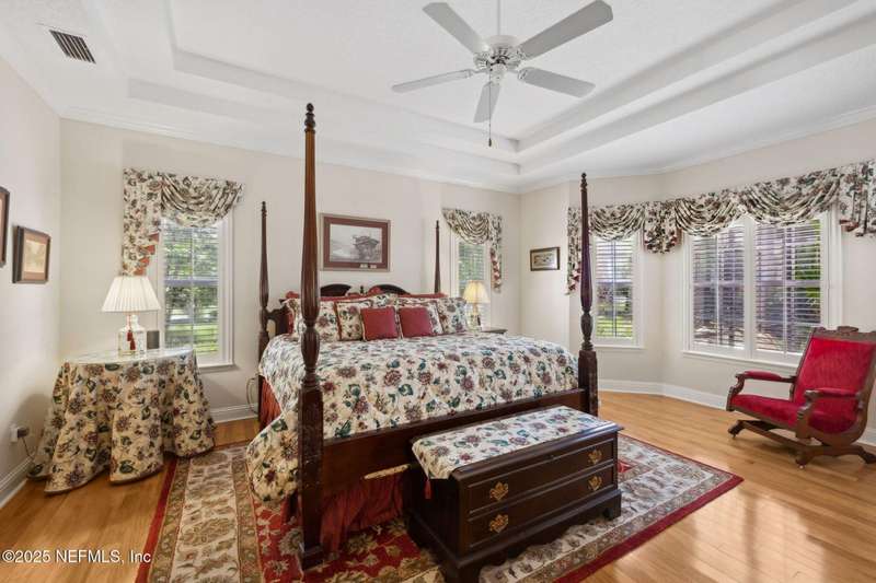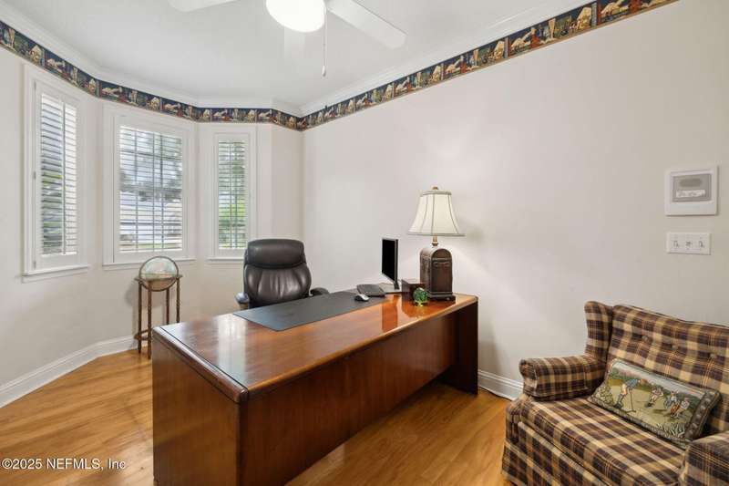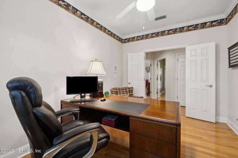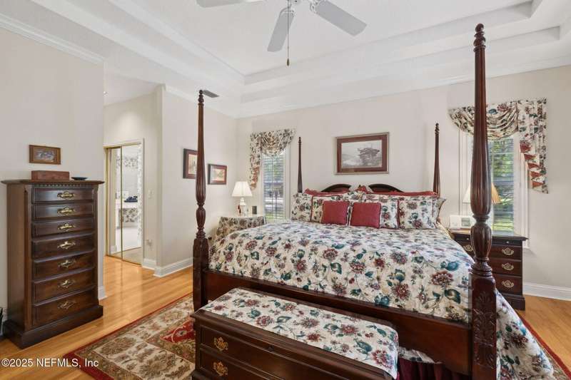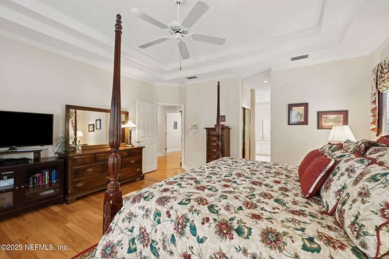 Nestled in a quiet, tree-lined cul-de-sac in the prestigious Deercreek Country Club neighborhood, this beautifully maintained home is designed for entertaining and everyday living. Offering 3,061 sq. ft. of living space, the interior features 4 spacious bedrooms, a dedicated home office, an upstairs Bonus RM/4th BR, 12-foot ceilings, and the warmth of gleaming wood floors underfoot. The updated chef's kitchen boasts 42-inch cabinets, double ovens, a walk-in pantry and Corian countertops, overlooking a large family room with floor-to-ceiling windows and a wood-burning fireplace. A stunning multi-level tray ceiling and architectural trim elevate the dining room to classic elegance that seamlessly connects to the living room and family room, which offer lanai access. An expansive primary suite showcases a multi-step tray ceiling, a bay window framing the sitting area, two walk-in closets, and a spa-like bathroom with a soaking tub, a separate shower, and double vanities. This home is thoughtfully designed with numerous storage spaces cleverly incorporated throughout. Step outside into a large covered screened lanai, a backyard oasis with tropical plantings, and a fountain bringing natural beauty to this outdoor setting. Come rain or shine, a whole-house surge protector offers peace of mind in any weather. A side-entry driveway welcomes you into a two-car garage and more! Recent updates include a New Dishwasher (2025), Electric Water Heater (2021), 2-HVACs (2018), a whole-house Surge Protector, an Expanded Screen lanai, and more! This gorgeous golf course community provides 24-hour manned gated security and boasts lifestyle, location, and convenience. Enjoy exclusive country club facilities and amenities by opting for a fee-based membership. Contact us today to arrange a private tour.