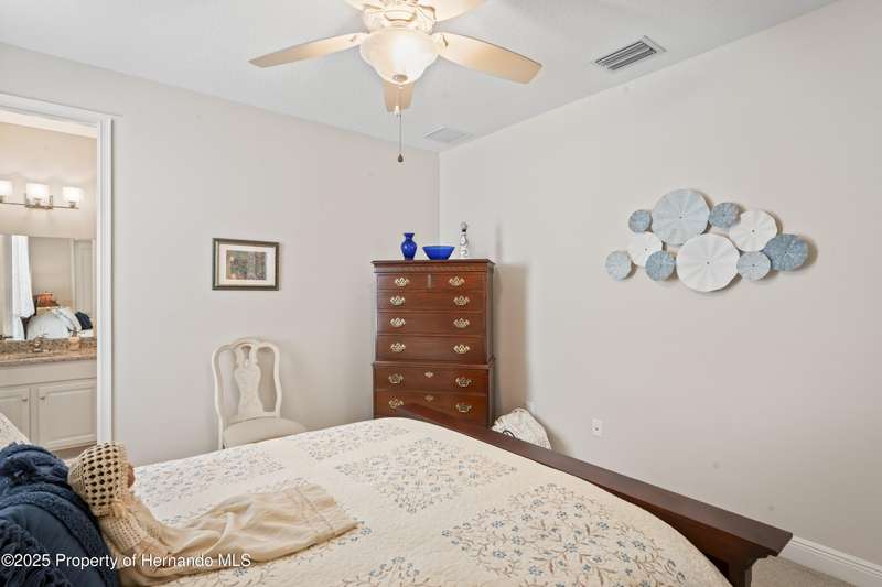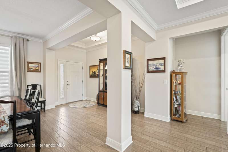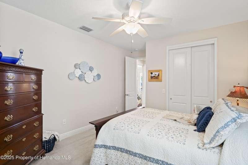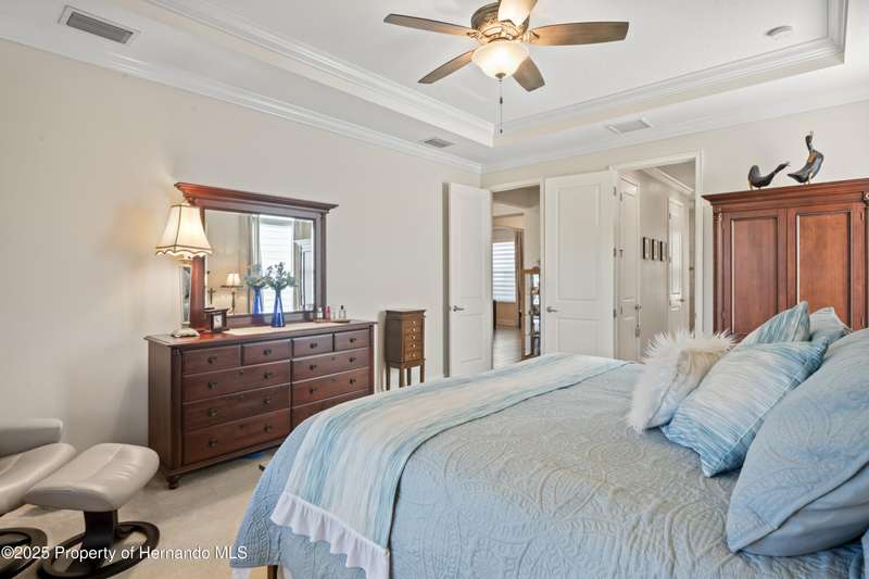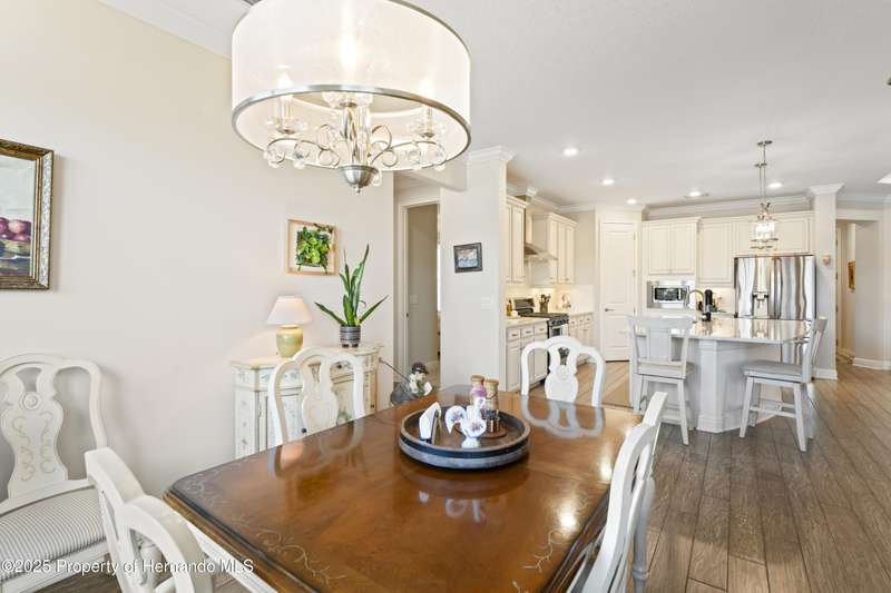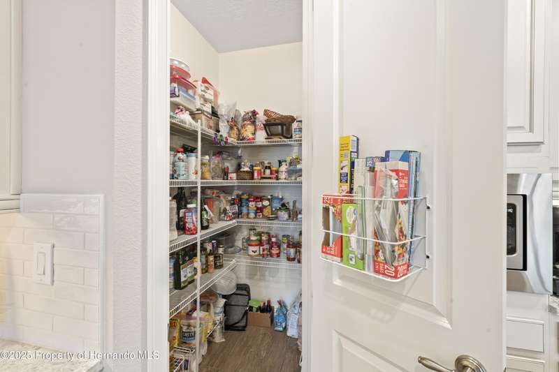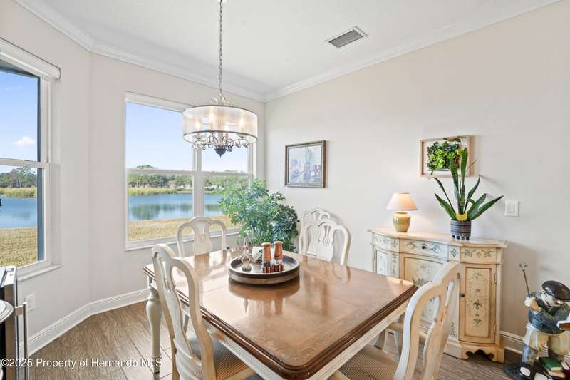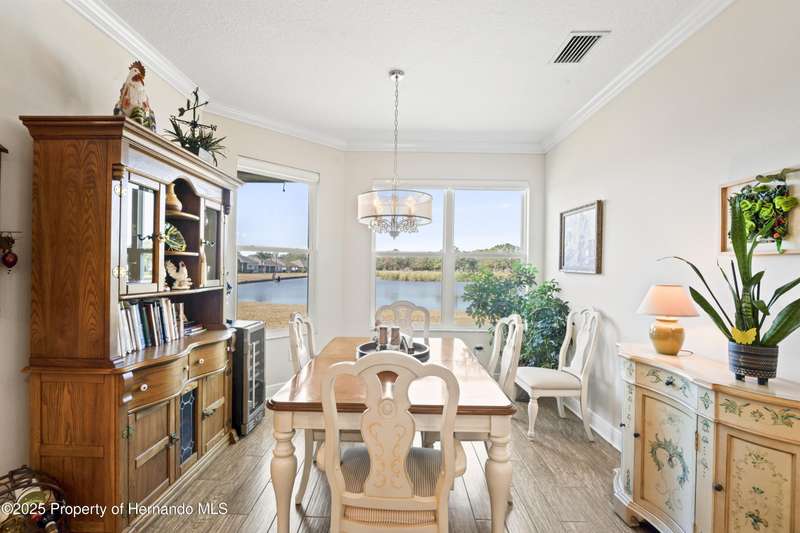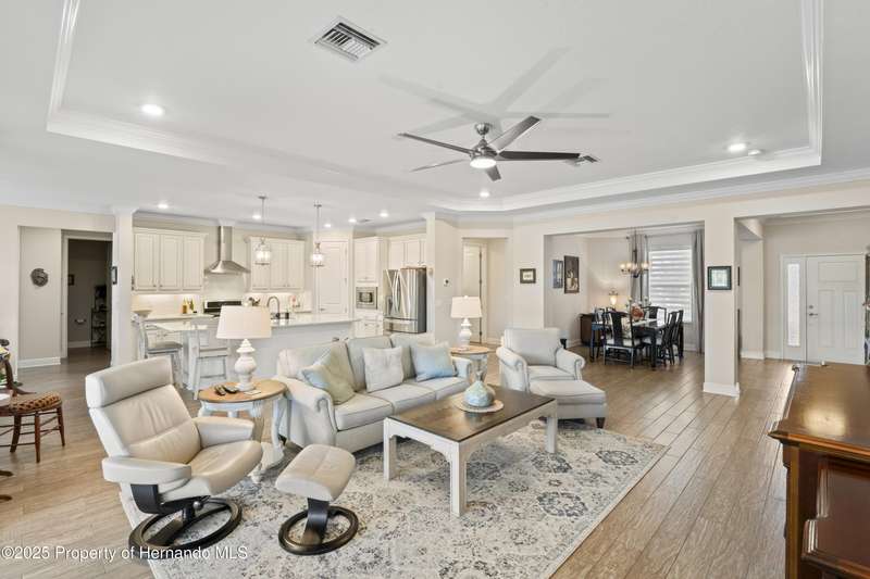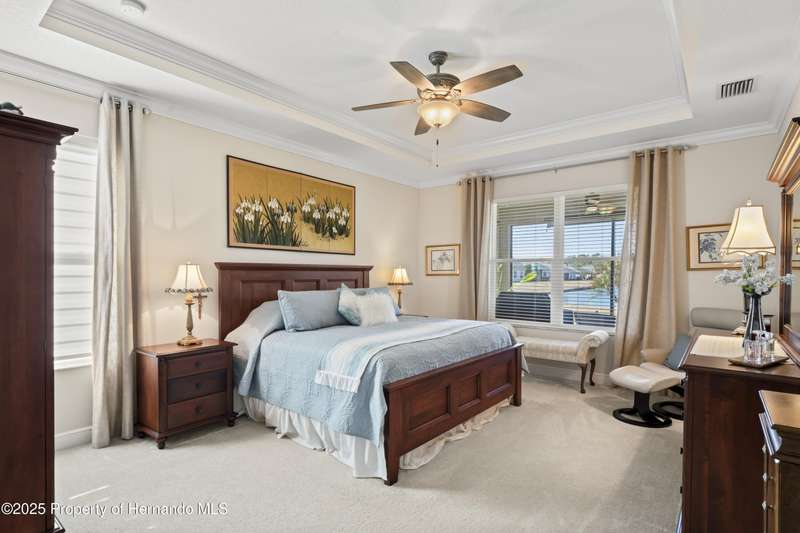 Still time to close by end of year and qualify for homesteading tax credit in Florida if this is your primary home! Immaculate Lakefront Home in The Cascades at Southern Hills - 55+ Community New! Homeowner is providing the initiation charge for a Sports Social Membership at Southern Hills Plantation Club. This includes 6 rounds of golf (and a guest if so desired), fitness center, tennis and pickleball courts, the pool at the country club and country club access including dining and all lifestyle functions. 2500 dollar Credit given at closing. Nearly new and move-in ready, this stunning 2-bedroom + office/3rd bedroom home offers high-end finishes, thoughtful upgrades, and beautiful sunset views over a serene lake. The chef's kitchen features a gas range with wall-mounted hood, intricate tile backsplash, under-cabinet lightin g, 42'' cabinets, walk-in pantry, Cambria quartz countertops, large island with composite sink, and built-in microwave. Open-concept living with tray ceilings, crown molding, 6'' baseboards, tile floors (carpet in bedrooms), ceiling fans throughout, and custom window treatments (Silhouette shades & faux wood blinds). Primary suite includes two walk-in closets and a spa-like bath with granite double vanity and walk-in shower. Guest bath also features granite finishes. French doors open to a flexible office/3rd bedroom. Enjoy outdoor living on the extended, covered, and screened lanai with retractable mechanical shades and pond views. Additional features: Three garage doors for cars/golf cart Attic storage with garage access Utility sink and cabinets in garage Water softener system & generator outlet Gas water heater & Sentricon pest control system Washer & dryer included Mature landscaping with front/back irrigation maintained by the HOA. HOA also includes cable, internet, heated pool, clubhouse access, and a full calendar of social activities. Optional membership to Southern Hills Country Club available. Fully pavered driveway. This pristine home offers comfort, elegance, and an active lifestyle-all in a beautifully maintained community.