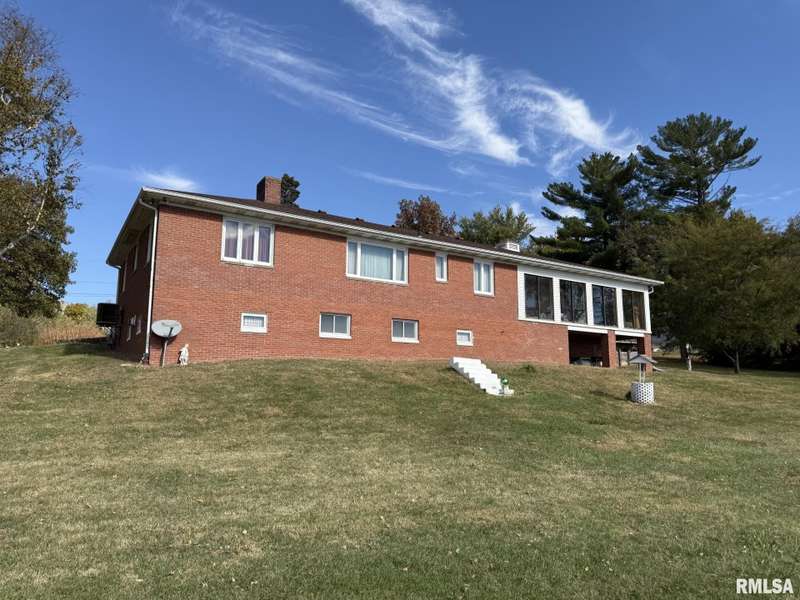 This charming brick home offers comfort, character & plenty of room inside & outside! The main floor features: foyer, spacious dining/living room w/beautiful stone woodburning fireplace! The eat-in kitchen has plenty of white cabinets, pantry closet and 1st floor laundry! Two of the 3 bedrooms are located on one side of the home & have unique wood accents including pecky cypress & knotty pine. There is a bathroom conveniently located between both of those bedrooms. Nice hardwood floors are throughout! The 3rd bedroom has a private bath. Enjoy the 3-season room, that over-looks the private backyard & provides stunning country views! Unique, open glass staircase leads to the finished, walk-out basement. The basement is open & has an office area & a family room w/ gas log fireplace! There is an abundance of storage throughout! Outside you'll find mature trees, utility shed, deck, and an asphalt driveway leading to the 2-car attached garage & 1-car detached garage! Don't miss your chance to view this lovely home!
