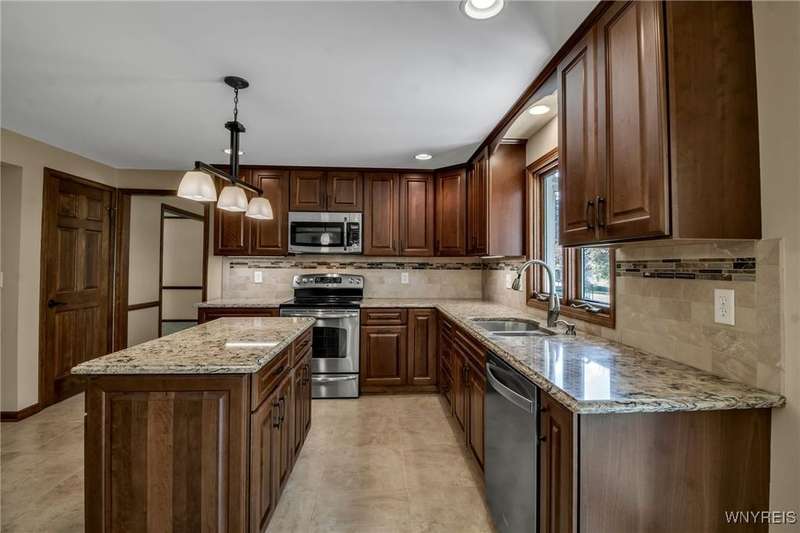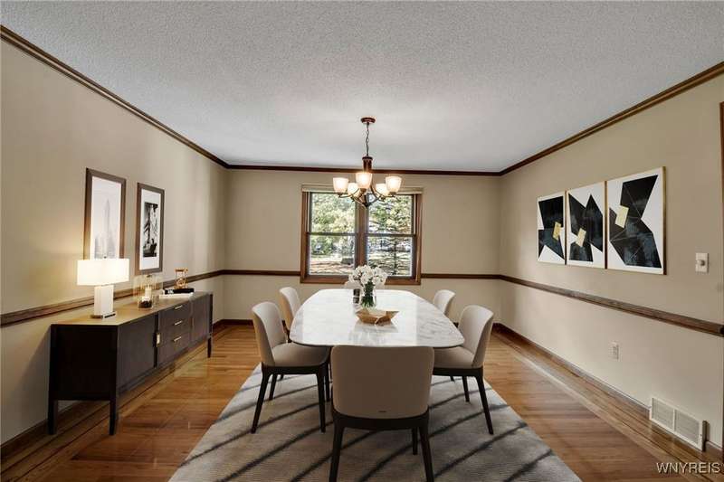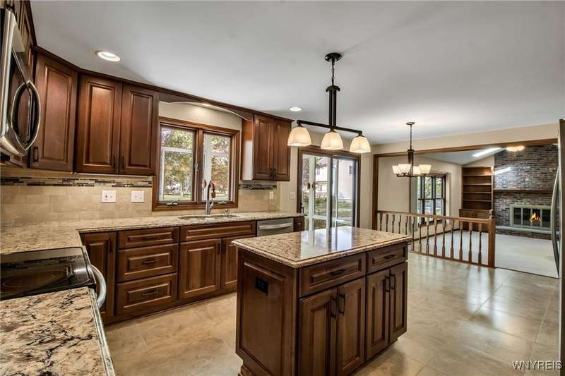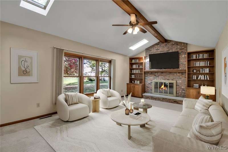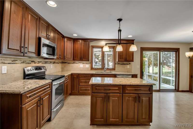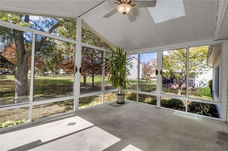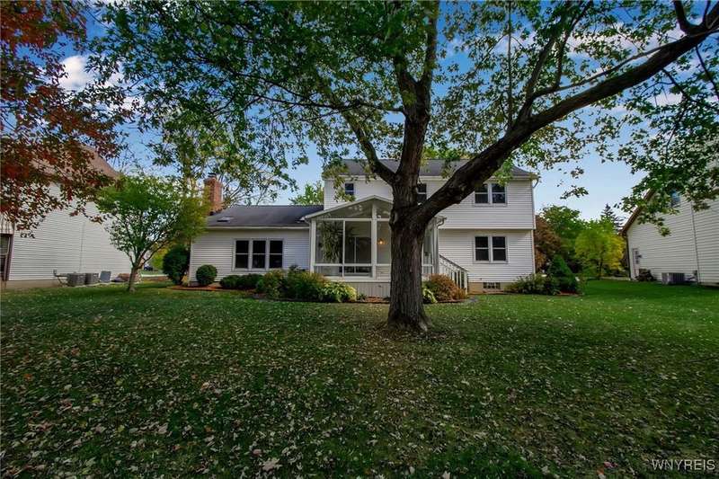OFFERS DUE THURSDAY 10/16! Lovely 4-bedroom, 2.5-bath home in Ransom Oaks. A welcoming covered front porch leads to the foyer, which opens to the first-floor office featuring built-ins and beautiful windows, as well as a spacious living room that provides additional space for entertaining. The formal dining room, located adjacent to the living room, features hardwood floors and crown moldings. 1st floor flows from room to room with an open floor plan. A wonderful and spacious updated kitchen features Cherry cabinets, Quartz countertops, a center island, under-cabinet lighting, stainless steel appliances, lovely tile, and a large eating area. Family room featuring a cathedral ceiling, skylights, custom-built-in cabinets, and a wood-burning fireplace. A wonderful 3-season room off the kitchen features a cathedral ceiling and is surrounded by sliding windows, allowing for beautiful natural light or fresh air. The first-floor updated half bath features Quartz. As you ascend to the second floor, you will find an en-suite with a cathedral ceiling and a lovely, updated full bathroom featuring cherry cabinets and granite countertops. Three additional nicely sized bedrooms and a full, updated bath with cherry cabinets and granite are off the hallway. Additionally, there is wonderful closet space and solid six-panel doors throughout. The lower level is partially finished, providing added recreational space and a workshop area with task lights. The 1st-floor laundry/mudroom is located off the 2.5-car garage. Enhancements and updates include new landscaping, an updated kitchen and bathrooms. In 2019, most windows were replaced. A sliding door leading to the three-season room was installed in 2021. Dishwasher-2023. A whole-house generator installed in November 2024, and a water backup sump pump was also installed. The desirable Ransom Oaks community features three pools, tennis and pickleball courts, and basketball courts, all for a low yearly HOA fee. Home is located in the highly rated Williamsville School District. Delayed negotiations. Offers due THURSDAY, OCTOBER 16TH, 2025, at 11:00 AM. Some photos are virtually staged