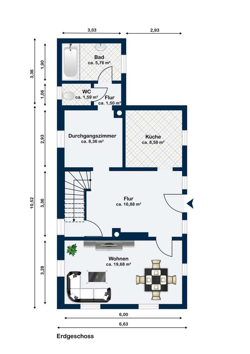 VON POLL IMMOBILIEN Euskirchen presents this quiet detached house in Weilerswist. Here you can live on a living space of approx. 118 m² and a plot area of 230 m². Internet availability of 1000 Mbit/s download and 50 Mbit/s upload is indicated for the address. (Source: Vodafone) The property offers a total of six rooms, including three bedrooms and a dressing room on the upper floor. On the first floor there is the living room and a passageway to the bathroom and WC of the house. The kitchen, which has a practical seating area, is a pleasant size and is directly adjacent to the hallway on the first floor. Also adjacent to the hallway is the spacious living area, which invites you to linger and relax. The three bedrooms offer enough space for a small family. The large bathroom on the first floor still needs to be adapted to today's modern style. The oil stove provides cozy warmth on the first floor of the house during the cold winter months. The interior courtyard offers a safe place for children to play and for DIY enthusiasts to develop in the adjoining workshop. The spacious vaulted cellar, which is accessible via the hallway on the first floor, offers more than enough space to store food or drinks. The property is located in a quiet residential area, which nevertheless offers good connections to all important facilities and transport links. Shopping facilities, schools and leisure facilities are nearby and offer a good infrastructure for daily life. All in all, this property offers great potential to become a fantastic dream property once the trades have been renovated. With creativity and craftsmanship, this house can be transformed into a real gem. If we have aroused your interest in this detached house, please enter all your details when contacting us using the contact button: First name, surname, address, telephone number and e-mail address. You will then automatically receive the exposé link. If you are interested in the property, please call or send us an e-mail.