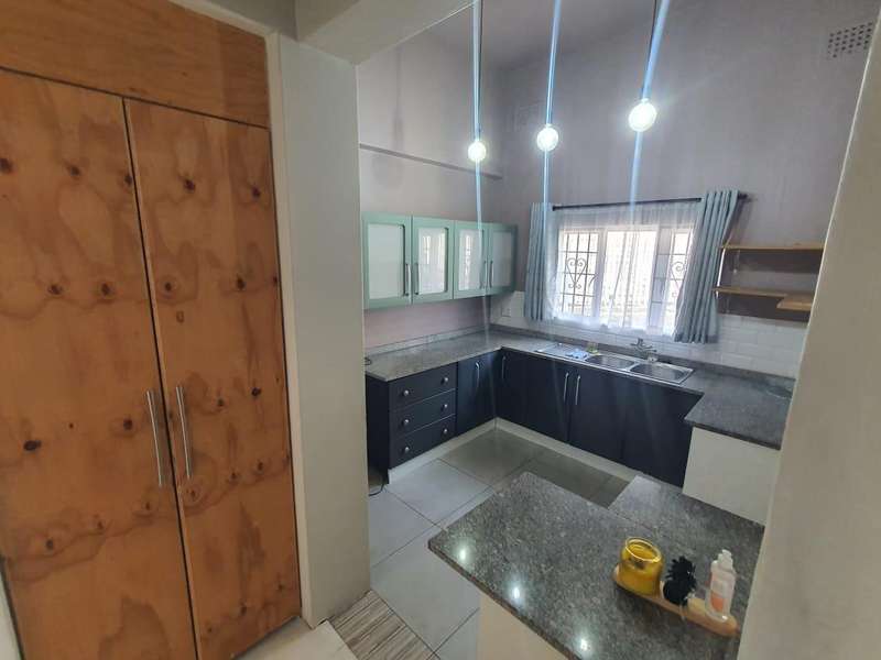 The neat kitchen is a haven for cooking, complete with a generous pantry to organize all your culinary essentials.