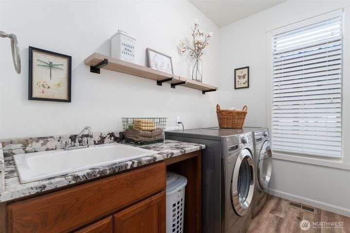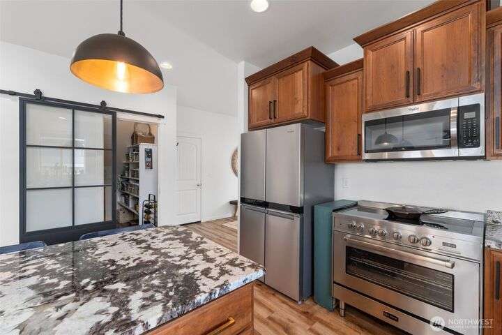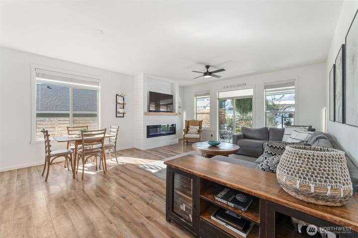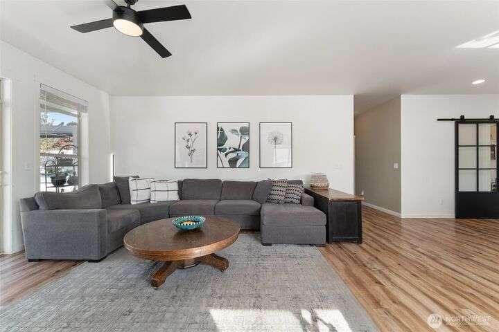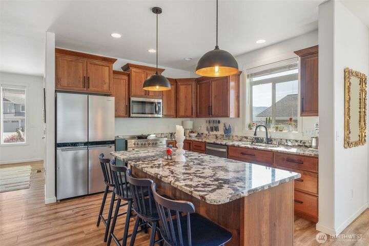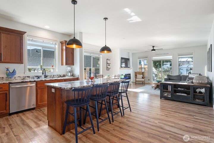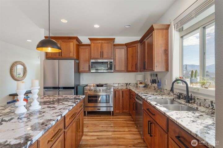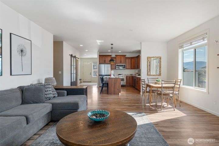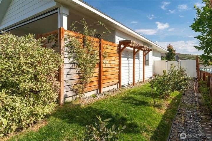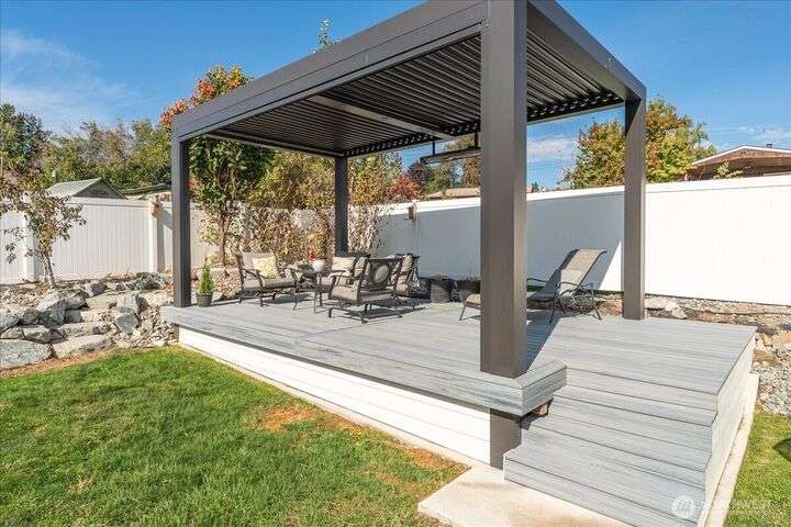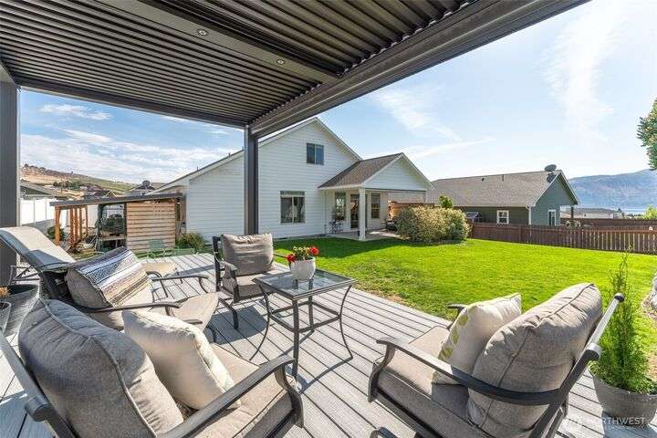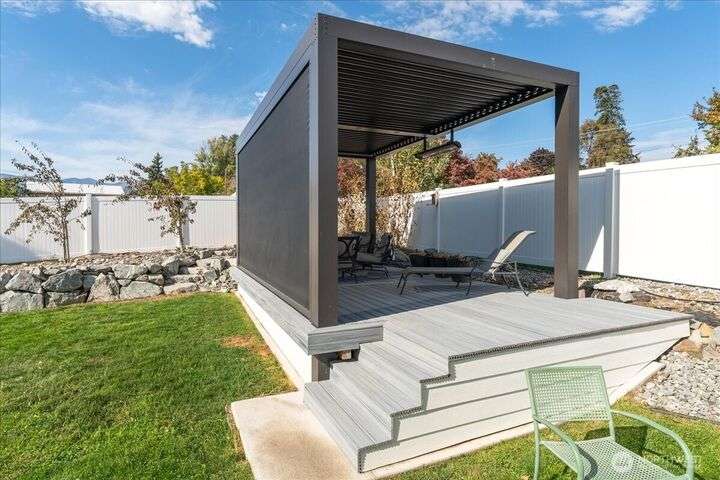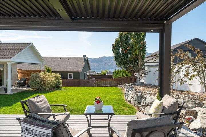 Beautifully updated Lake Chelan home for sale in the quiet Summer Breeze neighborhood between Chelan & Manson! This 4 bed + office, 3 bath contemporary home offers main-level living, granite counters, luxury flooring, stainless appliances, upgraded lighting, modern pantry, MagnaTrack sun screens and a new fireplace. Enjoy lake views from the fabulous backyard deck with luxury StruXure motorized pergola- adjustable louvers, heater, & LED lighting. Fully fenced, low-maintenance yard with artistic rock wall landscaping, garden beds, pear trees & blueberries. Versatile structure for chicken coop, carport, or storage. Fiber internet, city utilities, no HOA. Perfect Manson WA real estate—ideal for year-round living or vacation retreat!