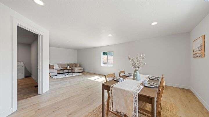 MLS# 287429 OFFERING $10,000 towards buyers closing costs! This newly renovated 3-bedroom, 2-bathroom home offers 1,906 sq. ft. of stylish and comfortable living in the sought-after Macauley Addition. With its modern charm, brand-new fireplace, and a cozy yet open feel, this home is truly move-in ready.Fresh updates include newly textured walls, interior and exterior paint, new flooring, and fully renovated kitchen and bathrooms—with even more thoughtful touches throughout. The kitchen shines with all-new appliances—including refrigerator, oven, microwave, dishwasher—and the laundry room comes complete with a brand-new washer and dryer. An extra family room provides versatile living space, perfect for gatherings or quiet evenings by the fire.Outside, enjoy a fully fenced backyard with a private patio—ideal for relaxing or entertaining. The yard has been freshly hydroseeded, so lush green grass is on the way! All this, just steps from Prosser High School in a welcoming neighborhood! Remodeled with integrity and pride — call your favorite realtor today to schedule a private tour and see for yourself!