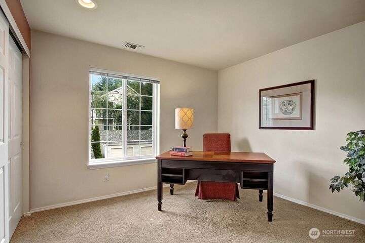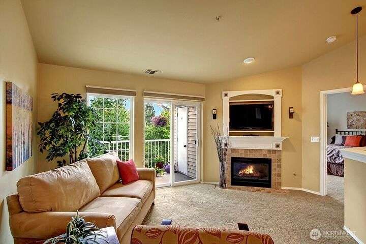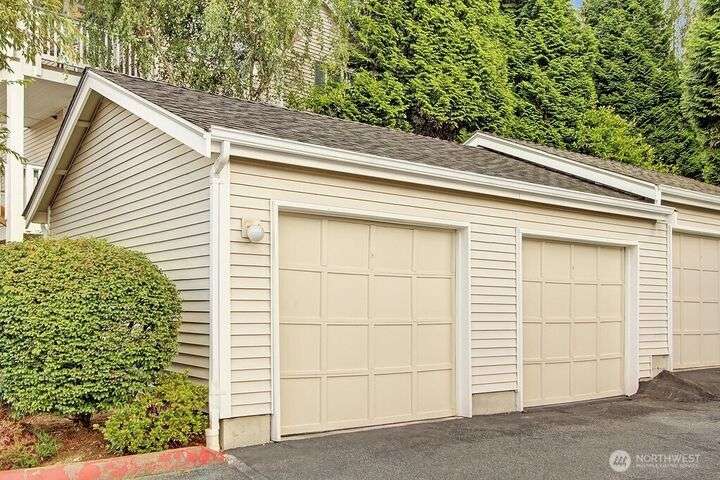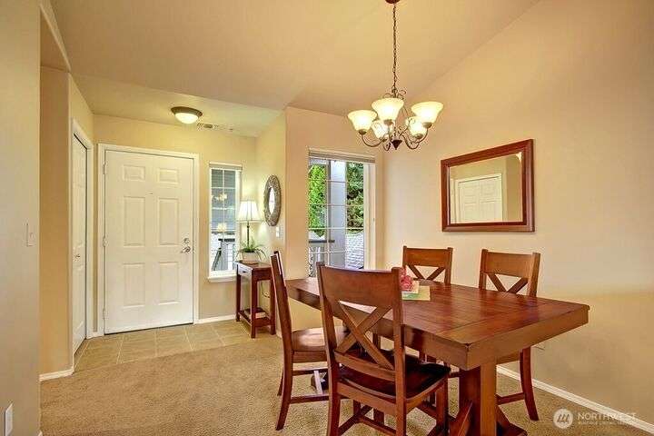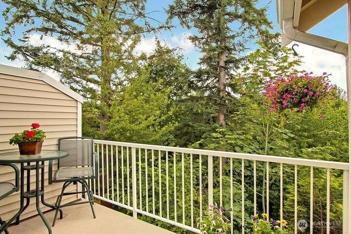 Available 11/28/25! Bothell 12109 NE 171st Pl, Woodinview Condominiums, 2 bedroom, 1.75 bath, 975 asf. Beautiful top floor condo, with open kitchen, stainless appliances and vaulted ceilings. This home opens up to a formal dining room. A half wall separates the dining room from the living room and the kitchen is open to the large living room. One bedroom and one bath are on each side of the kitchen. Surrounded by large trees and a quiet backdrop, this large, one level condo has all of the space you are looking for. 1 car detached garage plus one additional flexible parking space. Northshore School District.
