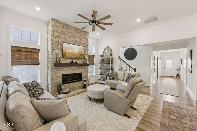Welcome to a home where every detail shines. This stylish residence boasts a wonderful, versatile floorplan with the sought-after Primary Suite located on the main level. Upstairs, find two additional bedrooms and a spacious loft/lounge.Cook and entertain in the bright Gourmet Kitchen featuring white cabinetry, a massive center island, and a gas oven/range. Relax by the impressive floor-to-ceiling Custom Stone Fireplace. A dedicated first-floor study/home office offers the perfect work-from-home solution.The 3-car garage is fully equipped with industrial lighting and a 220V outlet. Step outside to a private, enclosed covered patio or enjoy the charming, wide front porch, perfect for a swing. BONUS: Enjoy unparalleled neighborhood amenities, including a clubhouse, pool, pickleball, tennis courts, and trails! Come see this home where all the work has been done for you!