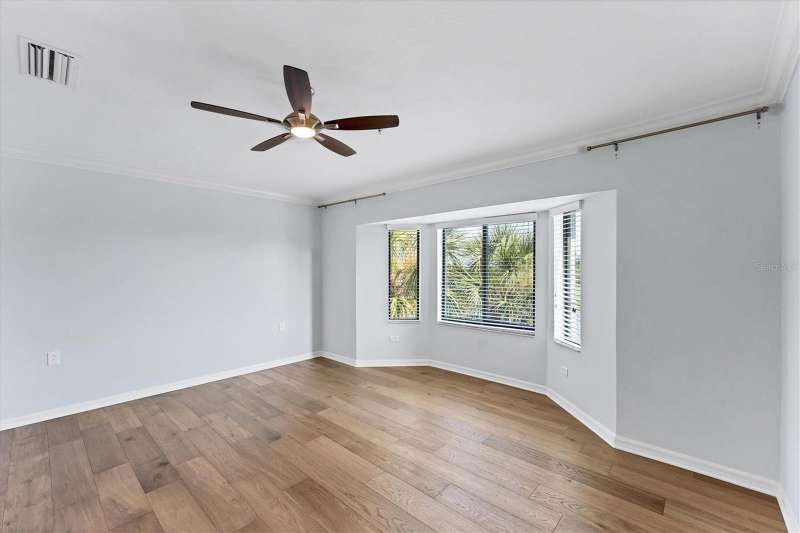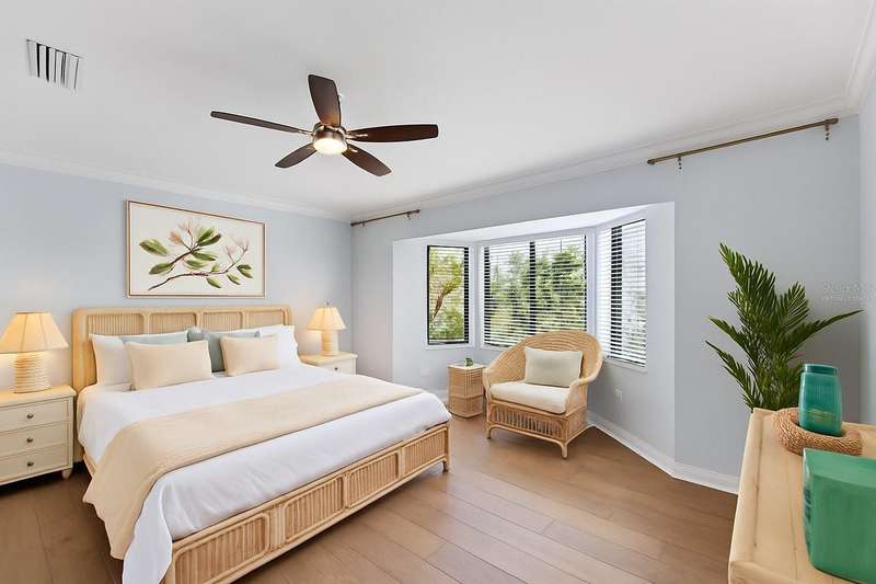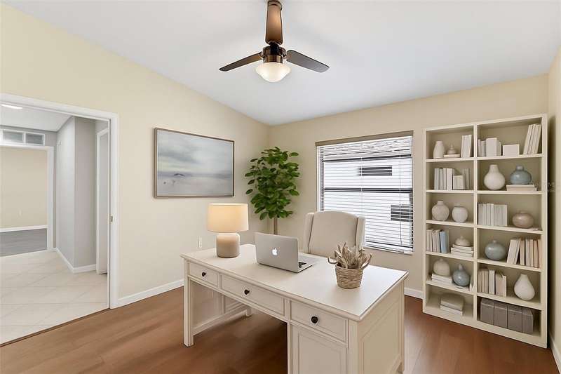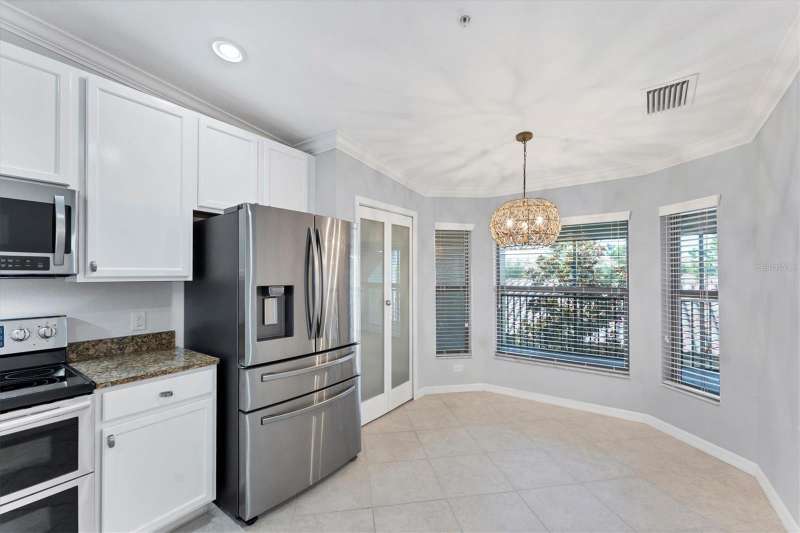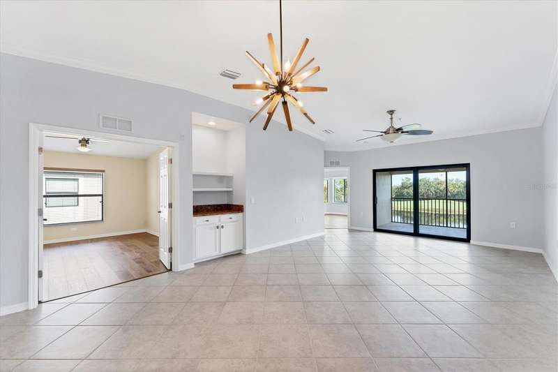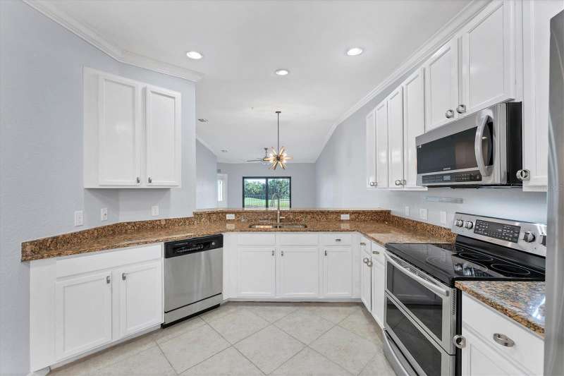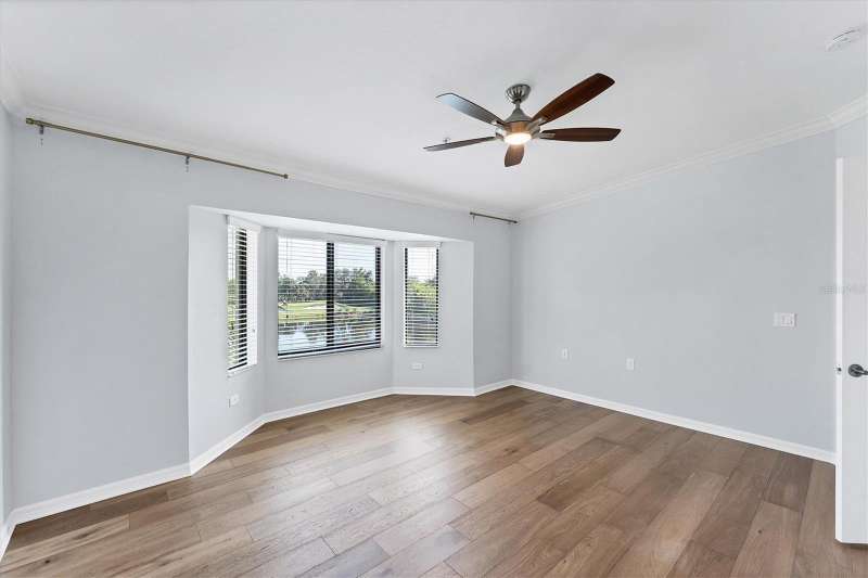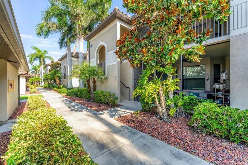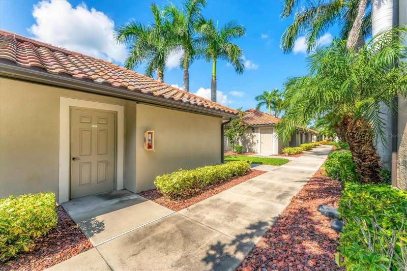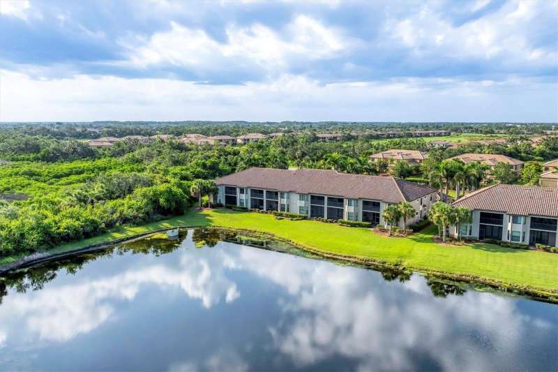 One or more photo(s) has been virtually staged. INCREDIBLE PRICE REDUCTION TURNS BACK THE CLOCK TO 2021! That’s the last year that an end unit Veranda sold for less than 360K! This Seller is motivated, are you ready to make your move? This is LOWEST PRICE BY FAR For a golf-deeded home with a garage in acclaimed River Strand Golf & Country Club! Don’t miss this fantastic opportunity for the BEST VIEWS from this largest end-unit Veranda INCLUDING A DEN with a large window, featuring vaulted ceilings and bright spaciousness. Boasting many DESIRABLE UPGRADES THAT SET IT APART, this beautiful home comes with GOLF and social membership. Take in the breathtaking views of the lake and golf course with preserve (no houses) as the backdrop from the main living areas, the primary suite, and of course, the back lanai. River Strand Golf membership is second to none with Andrew Green’s recent masterful redesign of the original Arthur Hills’ 27 holes championship course. CONSIDER ALL THESE UPGRADES: All carpet has been removed. Gorgeous Anna Maria Oak engineered hardwood flooring adorns the primary bedroom and the office/den. Ghost Elm LVP is in the second bedroom. The abundant kitchen cabinetry looks stunning with new paint and with new hardware. Every lower cabinet and the pantry have been outfitted with practical wood pullouts for ease of access. Notice the upgraded appliances: Samsung range with double ovens, Samsung microwave, Samsung 4 door refrigerator. Laundry is a pleasure with new Whirlpool dryer and top loading Whirlpool washer. Enjoy the upgraded lighting and ceiling fans with the fresh paint in most of the home: kitchen, breakfast, dining, living, hallway, and primary suite with bay window and glass inserts on closet doors. Ask for the full list of upgrades to see all this unit offers. Maintenance free grounds, exterior and roof with water, sewer, trash, Internet/cable and much more are included in your dues! Set in River Strand Golf and Country Club, a premier gated community with its stunning newly renovated 27-hole golf course, this Veranda condo provides you with Golf AND Social membership. You will have fun with all other resort amenities and activities if you are inclined, featuring pickleball, tennis, fitness, 2 resort pools and numerous satellite pools, one just 2 buildings away from your new home. A major renovation of the main clubhouse, restaurant, and Tikki bar area are underway & scheduled for completion early in the new year. River Strand is a beautiful community in a convenient location with easy access to I 75 and minutes to Lakewood Ranch, Sarasota, the Gulf Beaches, St. Petersburg, and Tampa. However, Costco, Aldi, medical services, many shopping venues and restaurants, Target, Season’s 52 are all found within Heritage Harbour, AND ALL ARE UNDER 10 MINUTES AWAY—NO MAJOR ROADS REQUIRED! This home is incredibly beautiful, and SERENE yet superbly located for convenience. You must experience it in person to fully appreciate it and its unbeatable location. Now is the time to make your Florida dreams come true!