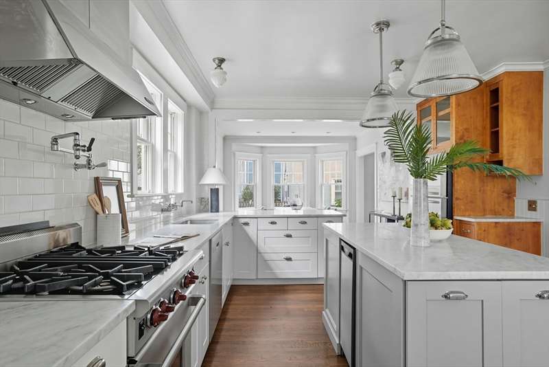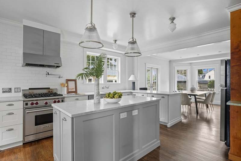 This beautifully updated Colonial combines vintage charm with modern comforts on one of West Medford s most desirable blocks. A welcoming front porch and gracious foyer open to a sun-splashed first floor, featuring an open kitchen/dining area with honed Bianco Carrara and Vermont soapstone countertops, custom cabinetry, and a Wolf range. The living room, with its wood-burning fireplace and intricate mantle, highlights the home s timeless woodwork, high ceilings, and hardwood floors. The elegant family bath has been thoughtfully renovated with a spa-like shower and soaking tub. Other recent updates include a 2015 roof, foam insulation, upgraded electrical, interior paint, and refreshed landscaping. Complete with a two-car garage, this home is nestled in a coveted enclave just steps to the commuter rail.