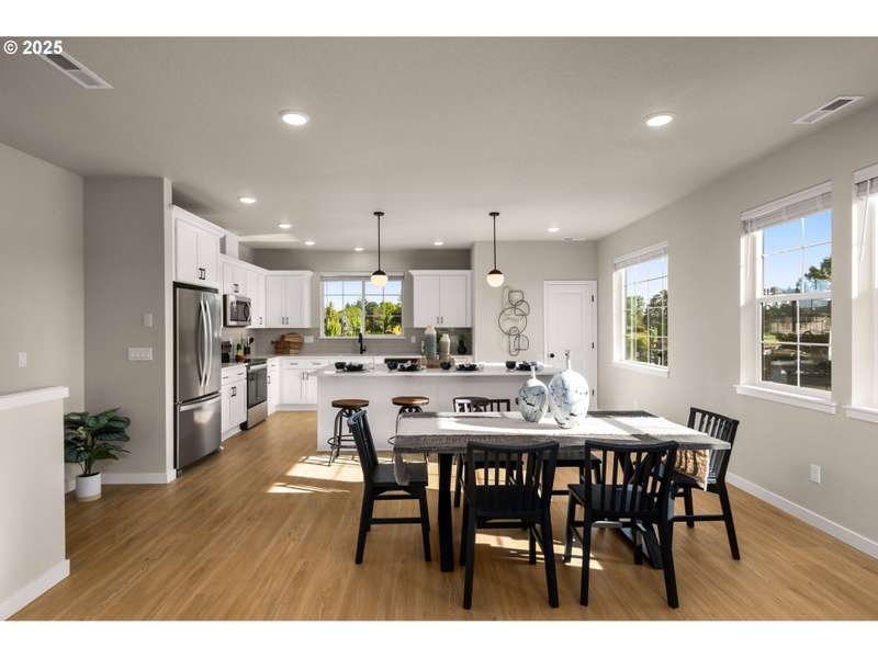 Builder Turnkey Incentive package on this home! Brand New Luxury Townhome Community, Located in South Hillsboro! Neighborhood pricing starting at $419,500. The Devon-End unit, Plan offers 4 bedrooms, 3.5 baths, a large kitchen island + walk-in pantry and 9' ceilings or higher throughout entire home. Standard Features include quartz counters & under-mount sinks in kitchen AND bathrooms, black matte hardware, lighting fixtures & faucets, stainless steel appliances, soft close doors & drawers at all cabinets and wide plank laminate hardwood flooring on entire main level. Stay warm in the winter with electric heat pump that will also keep you cool in the summer! The primary suite has a vaulted ceiling, walk-in closet, walk in shower, dual sinks and more. The upstairs loft area is a great flex space for a desk or small couch. The home has a two car side by side garage, a covered deck off the great room, plus a bedroom and full bath on the ground level. Pictures are of a same floorplan in model building w/ similar finishes. Taxes TBD. Blinds & AC included. Located on a corner lot. Home under construction- Move in ready December 2025. [Home Energy Score = 7. HES Report at https://rpt.greenbuildingregistry.com/hes/OR10226151]