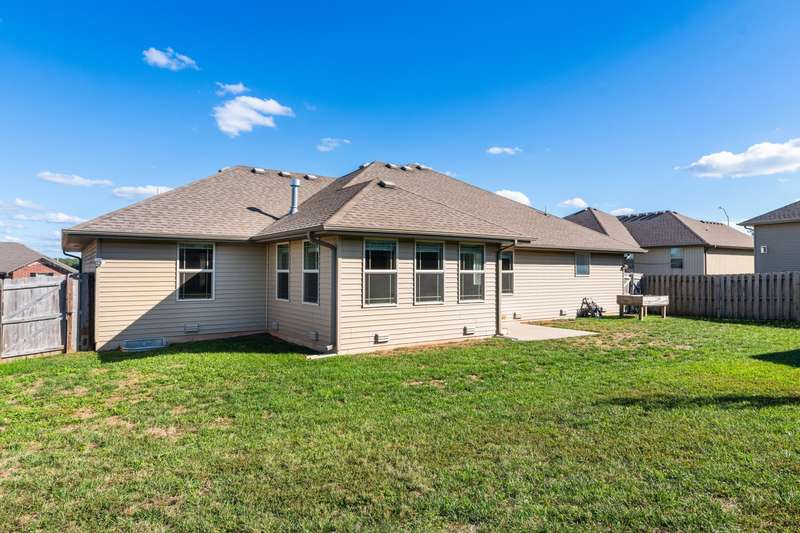 Welcome home to 1649 N Feather Crest Drive in Nixa -- a stunning Bussell Builders home offering comfort, craftsmanship, and convenience. Built in 2018 on the largest lot in the subdvision, this 3-bedroom, 2-bath residence boasts 2,185 square feet of open living space and a smart split-bedroom layout.Step inside to find elegant finishes, including granite countertops throughout, engineered hardwood flooring, and brand-new carpet in two bedrooms. The spacious kitchen opens to the living area, perfect for entertaining. The office could also be used as a small dining area.The light-filled sunroom invites you to relax while overlooking the fenced backyard -- complete with a storage shed for extra space. The primary suite impresses with three closets and a luxurious private bath with a jetted tub and a walk-in shower. Practical details include a professionally encapsulated crawlspace with a humidifier, attic storage with a pull-down ladder, and a 3-car garage.Located in one of Nixa's sought-after neighborhoods, this move-in-ready home offers style, function, and lasting quality. Make this one a MUST SEE before it's too late.