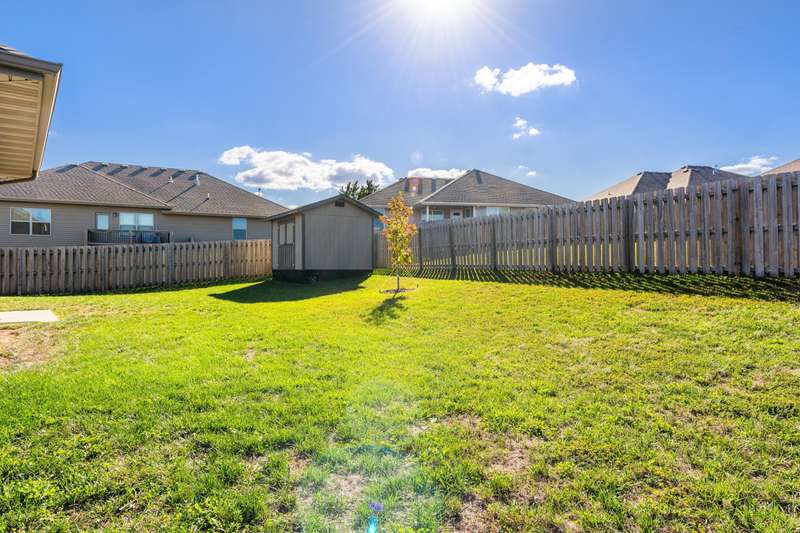 Welcome home to 1649 N Feather Crest Drive in Nixa -- a stunning Bussell Builders home offering comfort, craftsmanship, and convenience. Built in 2018 on the largest lot in the subdvision, this 3-bedroom, 2-bath residence boasts 2,185 square feet of open living space and a smart split-bedroom layout.Step inside to find elegant finishes including granite countertops throughout, engineered hardwood flooring, and brand-new carpet in two bedrooms. The spacious kitchen opens to the living area, perfect for entertaining. The formal dining room can easily serve as an office or flex space to fit your lifestyle.The light-filled sunroom invites you to relax while overlooking the fenced backyard -- complete with a storage shed for extra space. The primary suite impresses with three closets and a luxurious private bath with jetted tub and walk-in shower. Practical details include a professionally encapsulated crawlspace with humidifier, attic storage with a pull-down ladder, and a 3-car garage.Located in one of Nixa's sought-after neighborhoods, this move-in-ready home offers style, function, and lasting quality. Make this one a MUST SEE before it's too late.