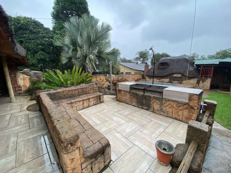 SOLE MANDATE ! Set on a generous 1276 sqm stand, this versatile property offers everything you need for comfortable family living and entertaining! The main house features 3 bedrooms and 2 bathrooms, with spacious living areas including a lounge, dining room, and a fitted kitchen complete with pantry, electric hob, undercounter oven. Enjoy outdoor living at its best with a lapa and paved open air braai area overlooking the sparkling swimming pool – perfect for hosting friends and family. An additional enclosed lapa with a jacuzzi offers year-round relaxation and entertainment. The property also includes a flatlet, ideal for guests or rental income, and plenty of parking with a double garage, carport for 6 vehicles, and storage space extra. An established garden adds to the tranquil atmosphere, while the off-grid water system ensures sustainability and peace of mind. Don’t miss out on this all-in-one gem – call today to arrange your private viewing!