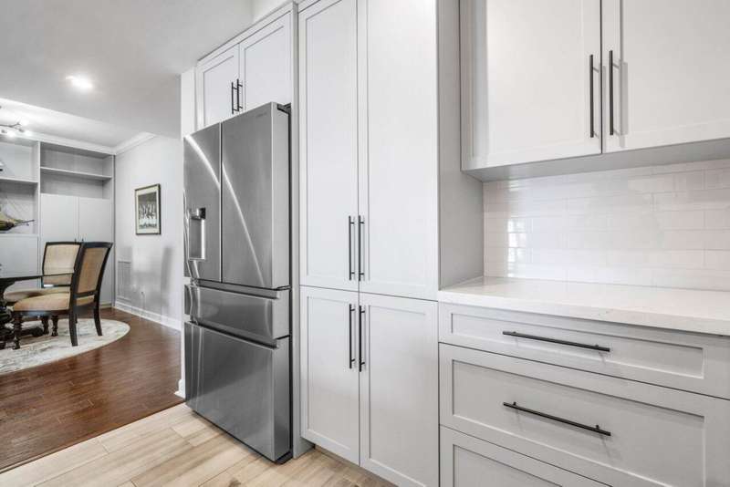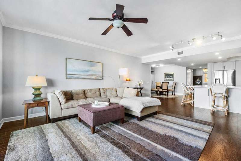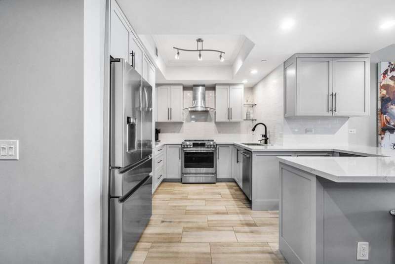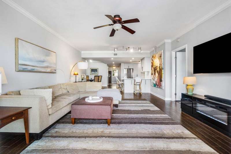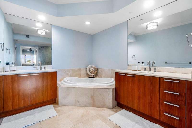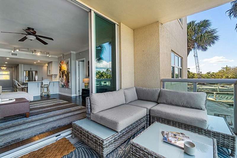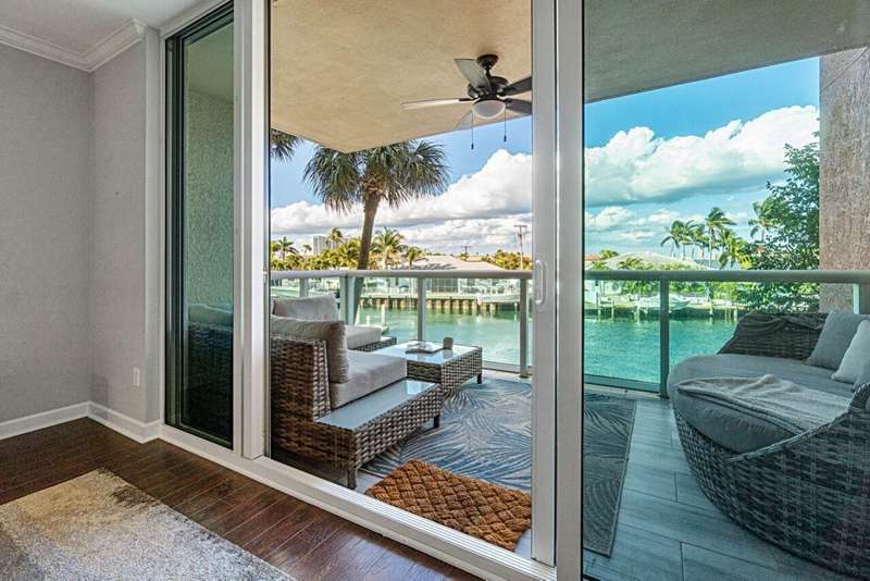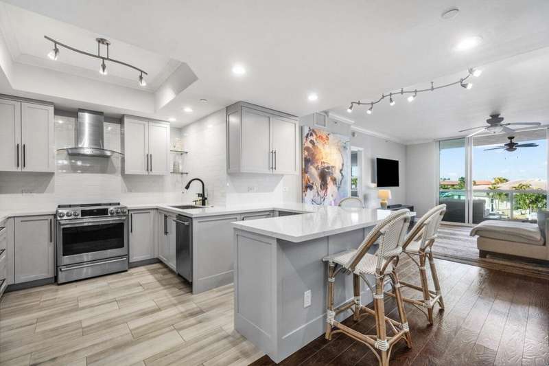 Turnkey waterfront CORNER UNIT w/2BR+dining/den, 2BA. Beautifully remodeled & expanded kitchen, impeccably maintained, neutral colors. Impact glass, semi-private elevator access. Open concept, split floor plan w/spacious owners suite w/his & her walk-in closets. Primary bathroom w large stand alone shower & jetted bath. Light & bright coastal inspired unit has a fabulous renovated kitchen that opens up the space and allows for easy entertaining with family and friends. Assigned garage parking & climate-controlled storage unit. 24/7 manned gate, valet, walking path w/gazebo. Adjacent Marina w/dry docks, minutes to ocean. No cats/allergies