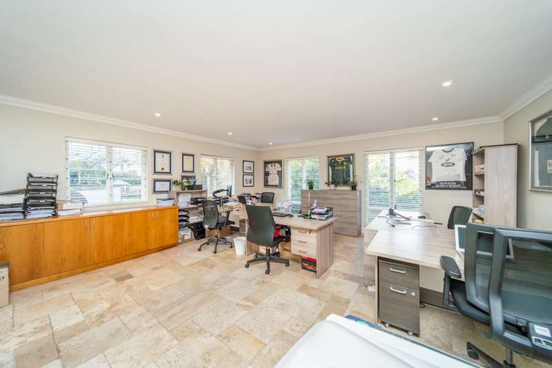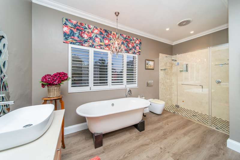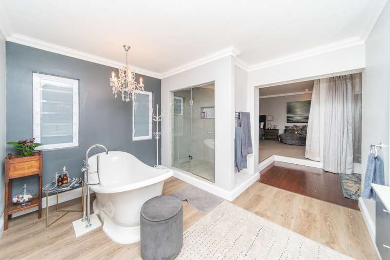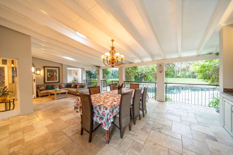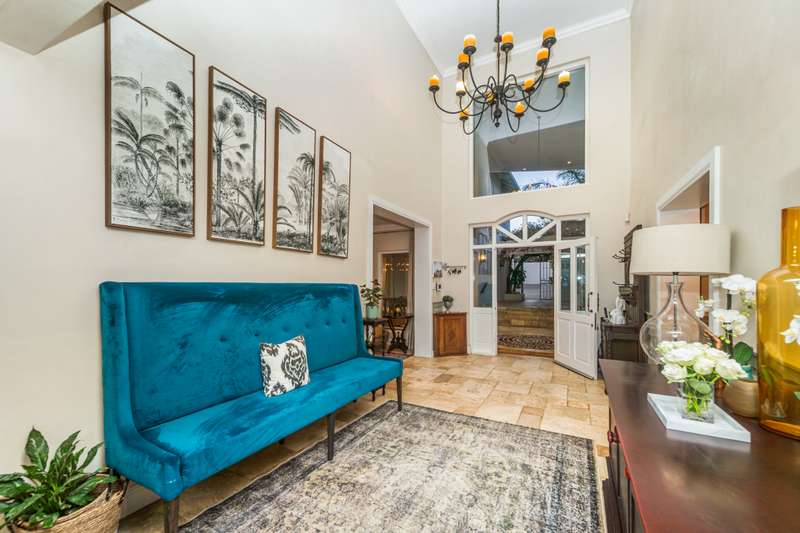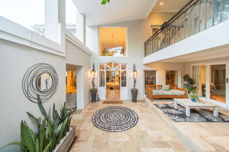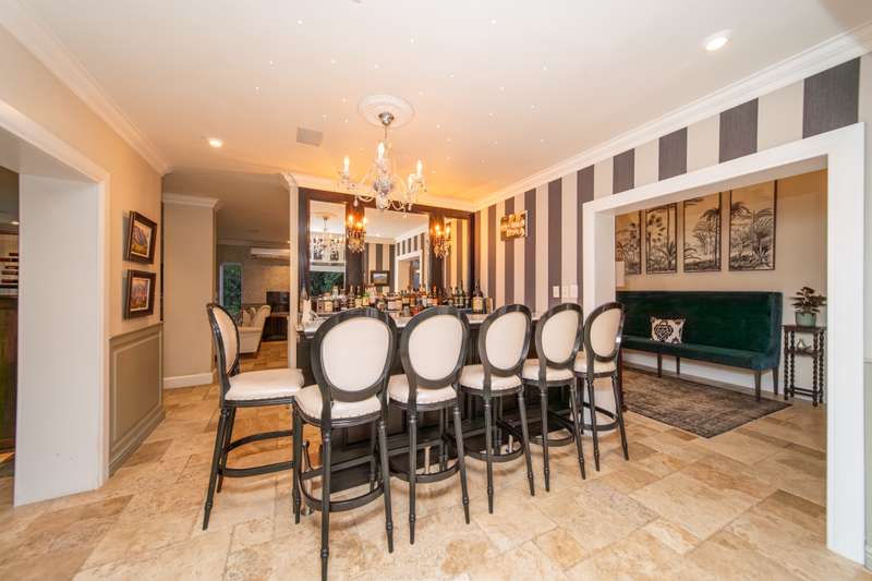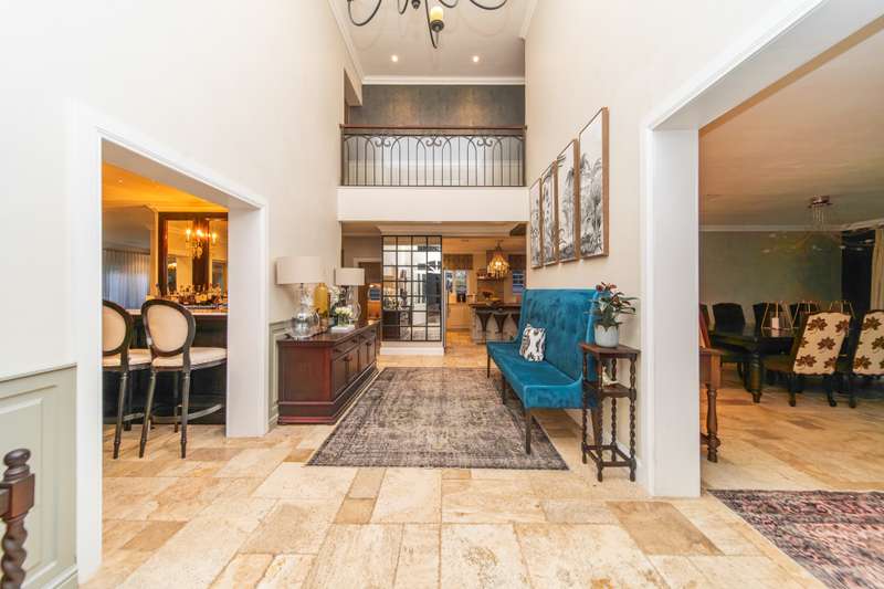 Step into a world of architectural excellence and timeless elegance with this expansive, luxury residence, designed for those who seek grandeur, privacy and unparalleled comfort. From the moment you arrive, the impressive courtyard and entrance hall set the tone for what lies beyond. A home where every detail has been thoughtfully crafted to create a refined yet inviting atmosphere, perfect for both sophisticated entertaining and tranquil everyday living. Exceptional Features include : • Grand open-plan living and dining areas, adorned with chandeliers, Ambiente Luce lanterns, and exquisite travertine flooring throughout. • Multiple lounges and entertainment spaces seamlessly connected to the dining area and Gentlemen’s bar, rich in dark wood and marble countertops. • Expansive covered outdoor terrace with built-in braai, ideal for alfresco dining and all-weather entertaining. • Bespoke Kitchen featuring high-end cabinetry a sperate scullery, and a dedicated breakfast area. • Private TV Lounge, perfect as a children’s retreat or quiet reading space. Upstairs Sanctuary: • Five spacious Bedrooms, all air-conditioned. Two offer en-suite bathrooms. • Full family Bathroom with luxurious his-and-hers vanities. • The Master suite is a true oasis featuring a quite reading area, private coffee station and French doors leading to a covered balcony. The Main en-suite is designed as a serene escape after a busy day Additional Luxuries: • Double inter-leading Garage • Separate staff quarters • Laundry room with private washing area • State-of-the-art inverter system • Borehole water with 2 x 5000l rain water fed Tanks and 5 x 5000l borehole fed tanks • Private Guest Suite / studio flat ideal as a home office or for extended stays This home is a rare opportunity for the discerning buyer seeking a residence that truly has it all. Contact me to arrange a private viewing and prepare to be mesmerized.