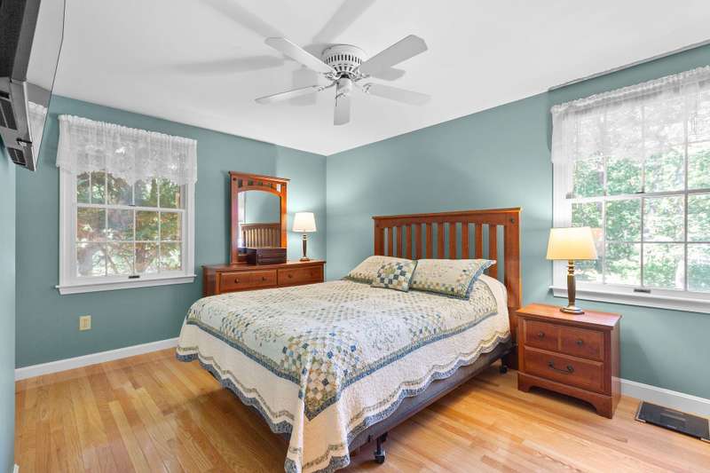 Welcome to this charming, well-maintained 3-bedroom, 2.5-bath home, situated on a peaceful lot set well back from the road. Built in 1985, this home combines timeless charm with modern updates. Step inside to discover a cozy living room with fireplace and gleaming hardwood floors that flow throughout the home. The updated eat-in kitchen is move-in ready with stainless appliances and granite counters.The primary bedroom is complete with its own private full bath, two additional bedrooms and another full bath provide plenty of space for family or guests. The main level also features a convenient ground floor laundry and a dedicated drop zone, making daily life a breeze.The incredible outdoor space offers a fully fenced rear yard and partially fenced front, perfect for pets and play, surrounded by beautiful mature plantings that create a private, tranquil oasis. The spacious deck is the perfect spot for morning coffee or evening gatherings.The home also includes a versatile walk-out lower
