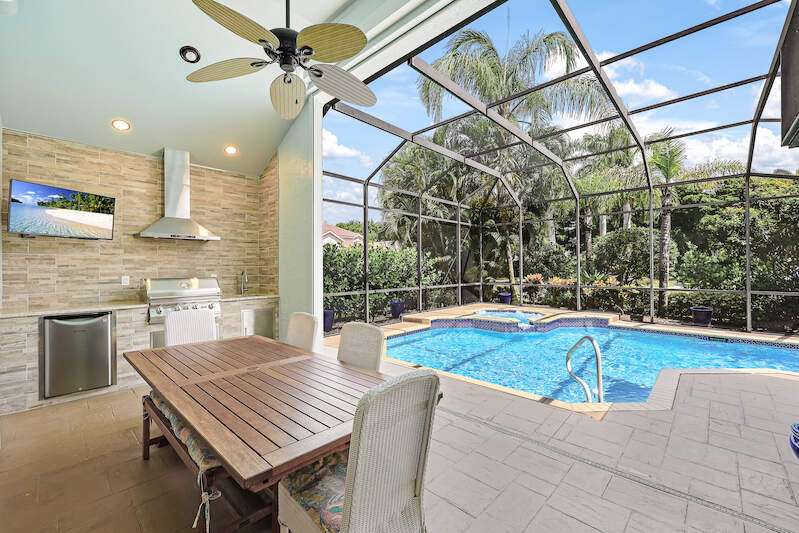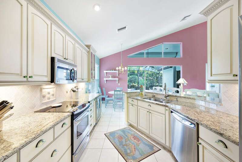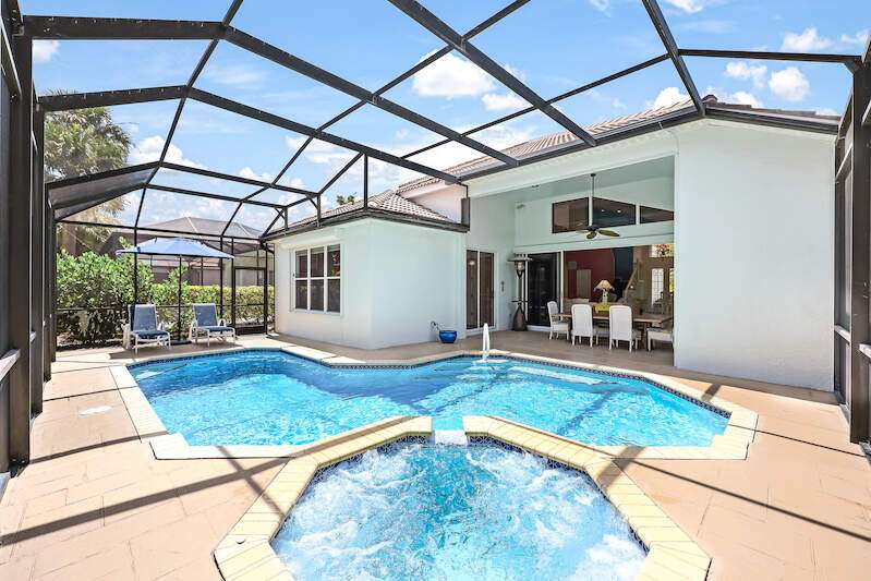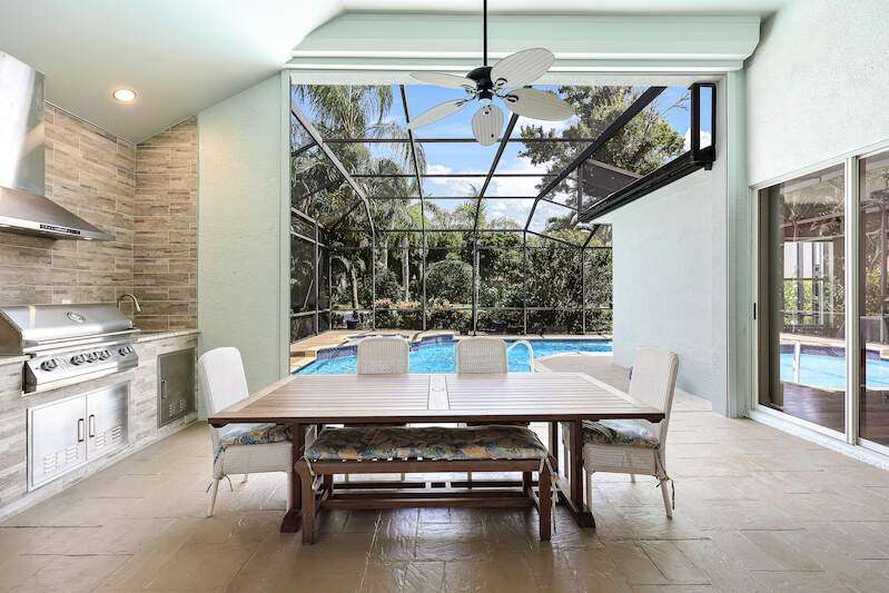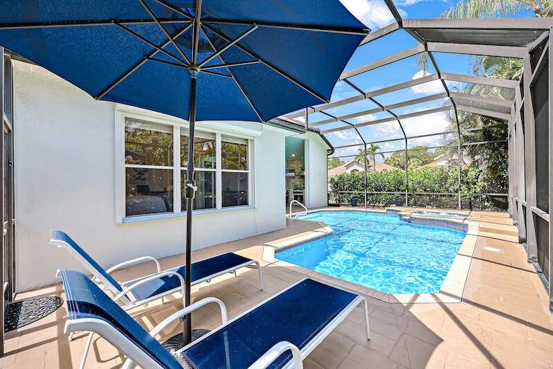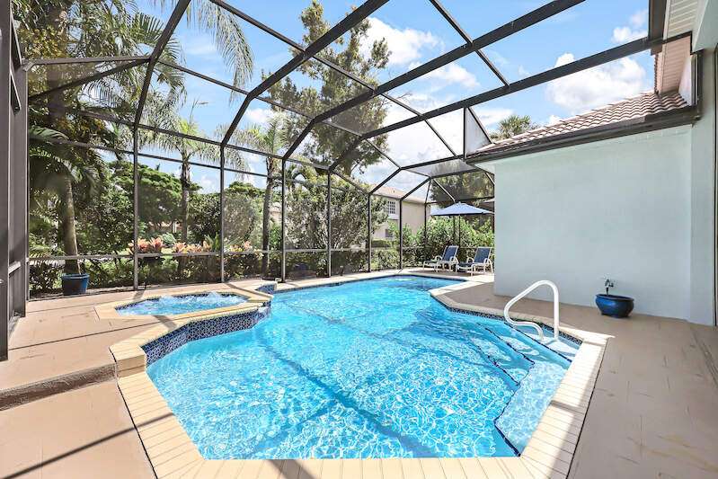 Indulge in the Pelican Marsh lifestyle within this amenity-rich, gated community in North Naples. This very special home in a unique location can now be yours. Relish the sun-filled home at the end of the street, nestled in a quiet location, surrounded by lush tropical landscaping that provides open views and exceptional privacy. The lanai is perfect for outdoor entertaining and features a brand-new outdoor kitchen with a gas grill, mounted TV adjacent to the refurbished pool and spa. For your convenience and peace of mind, the home is equipped with electric hurricane shutters, select impact windows, and a new AC and water heater installed in 2024. NEW ROOF as of 9/2024! This spacious single-family home offers three bedrooms and three full baths, with two bedrooms conveniently located on the main level. The second floor includes a third bedroom, a full bath, and a versatile loft that can serve as a fourth sleeping area or an office space. The owner's suite boasts a remodeled bathroom with a walk-in frameless shower, dual-sink vanity, a large walk-in closet, and direct access to the lanai. The great room design creates a sense of openness with volume ceilings and a seamless flow into the dining area and updated kitchen. The kitchen is a chef's dream, complete with stainless steel appliances, custom cabinetry, soft-close drawers, and a wine cooler. Situated in a unique location in Ventura, this home is minutes from world-class shopping, dining, and pristine beaches. The community offers an array of amenities, including a top-notch tennis program with an on-site pro, a fitness center with a trainer and active classes, bocce, pickleball, and the newly added Courtside on-site restaurant. Pets welcomed with a limit of 2. This neighborhood is enhanced by mature tree-lined streets, safe sidewalks, and roving security. Private golf memberships are available separately for those seeking an exclusive golf experience. Don't miss this opportunity to enjoy the best of the Pelican Marsh lifestyle!