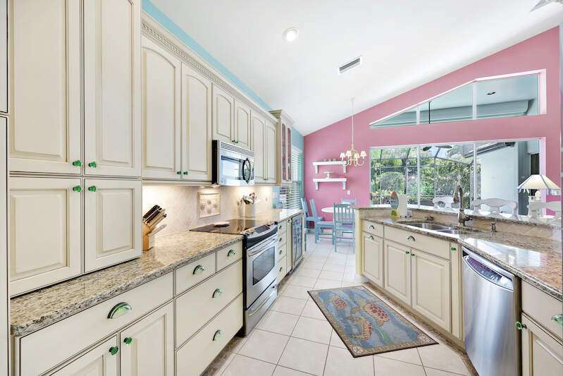 Indulge in the Pelican Marsh lifestyle within this amenity-rich, gated community in North Naples. This very special home in a unique location can now be yours. Relish the sun-filled home at the end of the street, nestled in a quiet location, surrounded by lush tropical landscaping that provides open views and exceptional privacy. The lanai is perfect for outdoor entertaining and features a like-new outdoor kitchen 2019 with a gas grill, mounted TV adjacent to the refurbished pool and spa. For your convenience and peace of mind, the home is equipped with electric hurricane shutters, select impact windows, and a new AC and water heater installed in 2024. NEW ROOF as of 9/2024! This spacious single-family home offers three bedrooms and three full baths, with two bedrooms conveniently located on the main level. The second floor includes a third bedroom, a full bath, and a versatile loft that can serve as a fourth sleeping area or an office space. The owner's suite boasts a remodeled bathroom with a walk-in frameless shower, dual-sink vanity, a large walk-in closet, and direct access to the lanai. The great room design creates a sense of openness with volume ceilings and a seamless flow into the dining area and updated kitchen. The kitchen is a chef's dream, complete with stainless steel appliances, custom cabinetry, soft-close drawers, and a wine cooler. Situated in a unique location in Ventura, this home is minutes from world-class shopping, dining, and pristine beaches. The community offers an array of amenities, including a top-notch tennis program with an on-site pro, a fitness center with a trainer and active classes, bocce, pickleball, and the newly added Courtside on-site restaurant. Pets welcomed with a limit of 2. This neighborhood is enhanced by mature tree-lined streets, safe sidewalks, and roving security. Private golf memberships are available separately for those seeking an exclusive golf experience. Don't miss this opportunity to enjoy the best of the Pelican Marsh lifestyle!