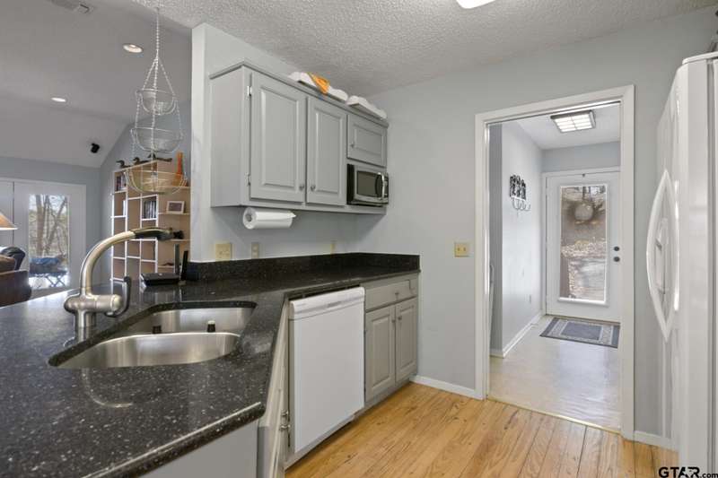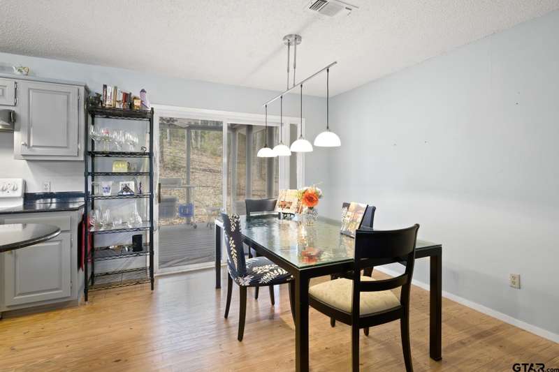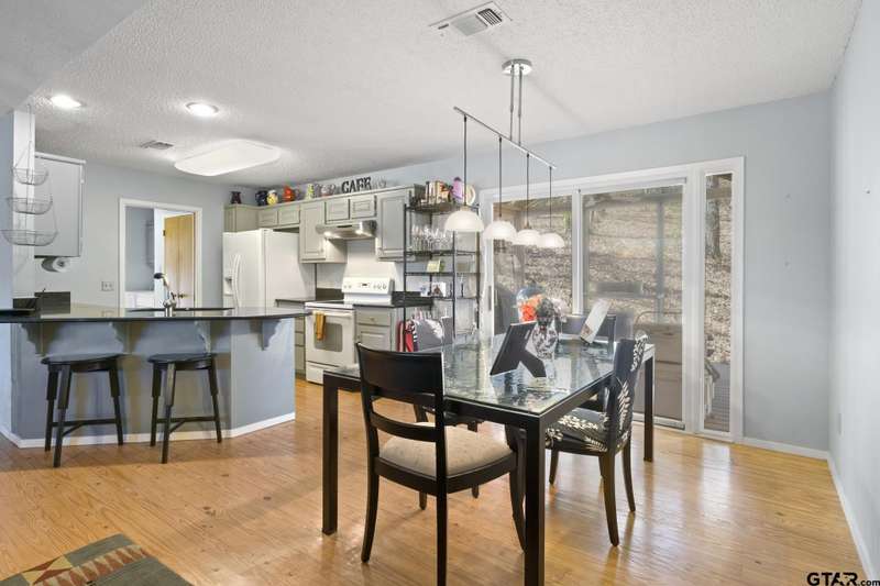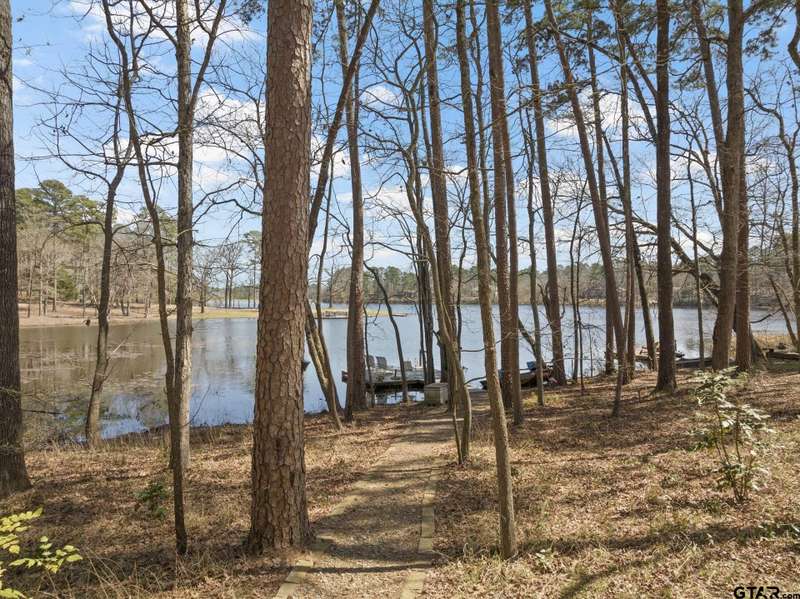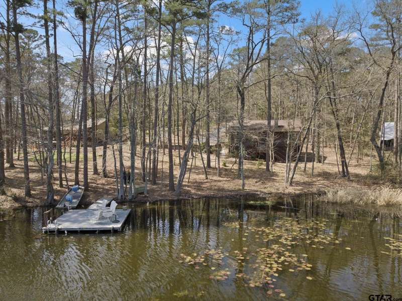 Horseshoe Bend! One of the best kept secrets hideaways in East Texas. Come and take a look at this charming 2-bedroom, 2-bath cottage nestled on the picturesque Horseshoe Bend Lake in the serene piney woods of East Texas! This awesome property was dubbed "The Porch" due to the 40 ft screened in elevated porch overlooking this serene private fishing lake. The open-concept living area features stunning views of the lake and surrounding trees, along with a unique stone fireplace that is actually a Heatilator system – imagine heating your entire home with a cozy fire! Both spacious bedrooms offer lake views and private baths, and an attic fan ensures comfort on warm nights. The owners saw this as a fun eclectic escape and formalized that vision by having an artist add renditions of various Matisse images to the master bedroom suite’s bathroom and closet doors. The kitchen boasts beautiful HanStone Quartz countertops.This home also features a screened-in back porch, perfect for grilling or fish fry's with family and friends. The screened-in lakeside porch provides an idyllic setting for enjoying morning coffee or evening relaxation while taking in breathtaking lake views. Below the home is a third enhancement that includes a workshop, with air conditioning and storage area. Just steps away, you'll find your spacious dock right at the water's edge. For fishing enthusiasts, Horseshoe Bend Lake is renowned as one of the best fishing spots in East Texas, with tranquil waters free of speed boats. If you're seeking a peaceful retreat surrounded by nature, this cottage could be your ideal haven.