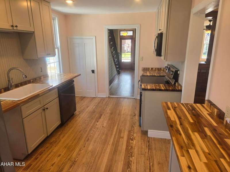 A charming nicely renovated 3 bedroom 2 bath home has everything you need!! The front porch invites you into the open foyer of the home. A spacious living room and dining room has the original walnut built-in arch way and shelving which adds to the warm painted walls. New double pane windows and AC mini splits and a single french backdoor off kitchen. The galley kitchen has all LG new stainless steel appliances and cabinetry and recess lighting. Eye catching handmade solid wood countertops. The 2nd floor features a stackable washer/dryer and pine closet. The master bath large shower and modern glass door. Bright spacious bedrooms and beautiful wood flooring. The spacious 2nd bath offers a tub and storage. Back porch leads to the unique patio made of brick pavers. The white vinyl privacy fence adds to landscaping with the spacious backyard for all your enjoyment. The off street parking is a bonus showing off the 2 car parking space with its unique brick pavers giving the outside that wow !! Home Sweet Home is this home!! Centrally located and walking distance to town and schools!!
