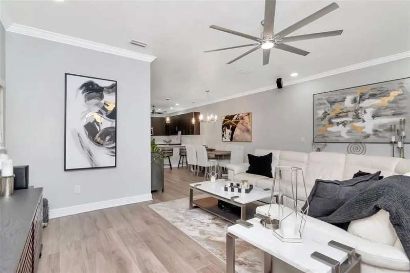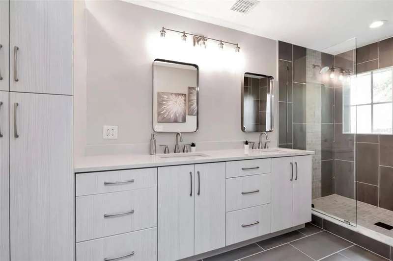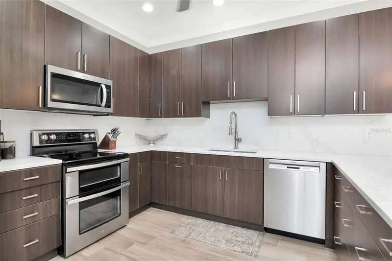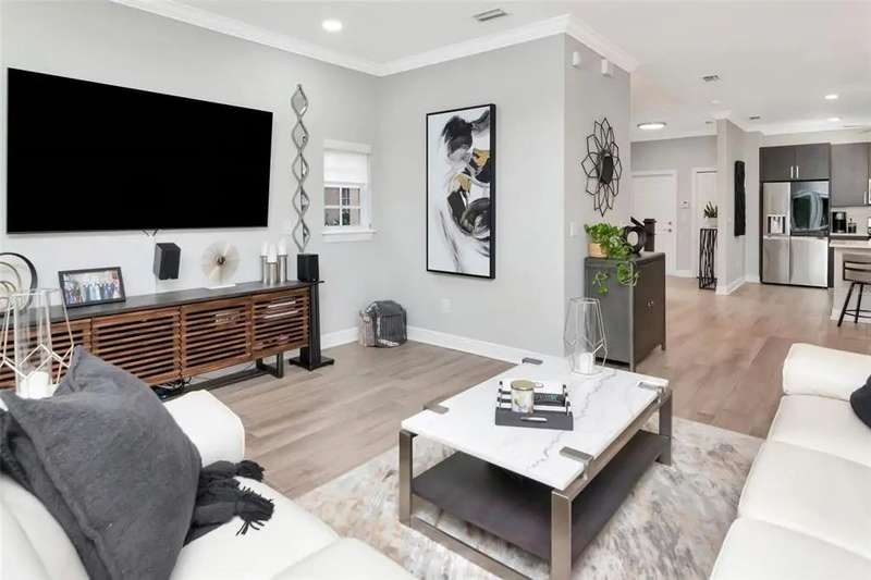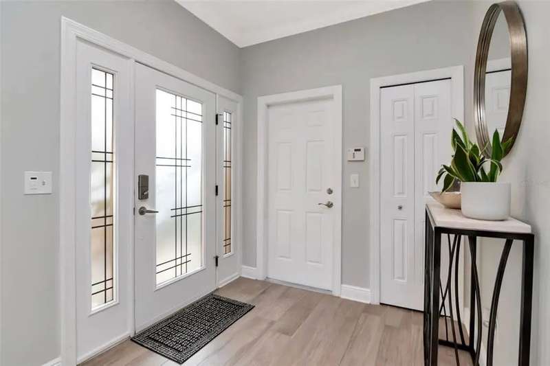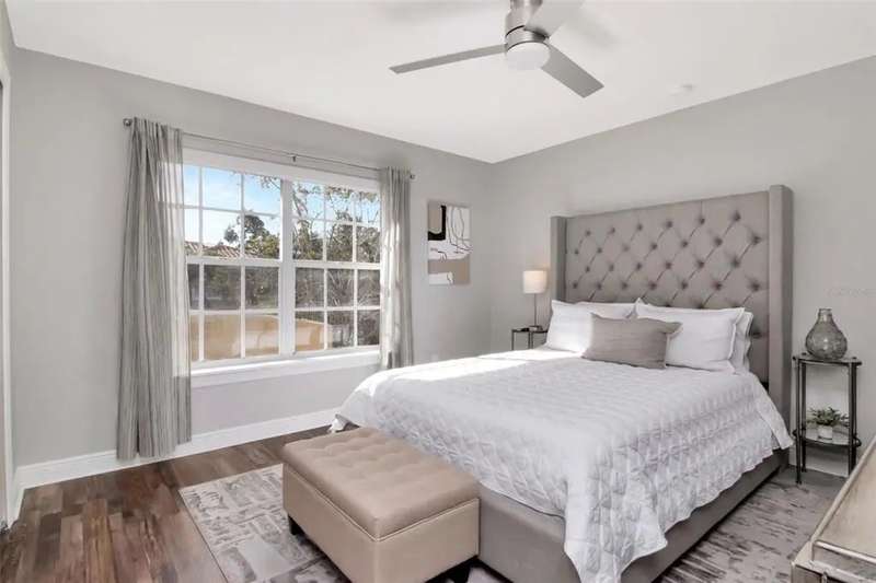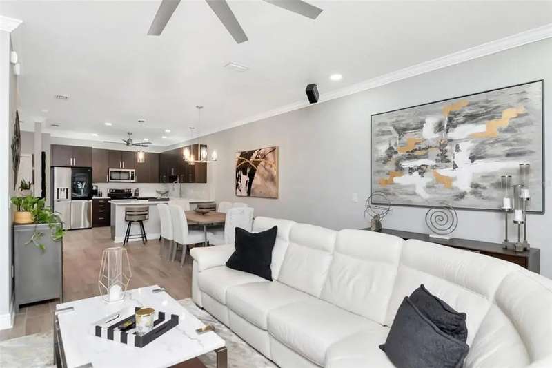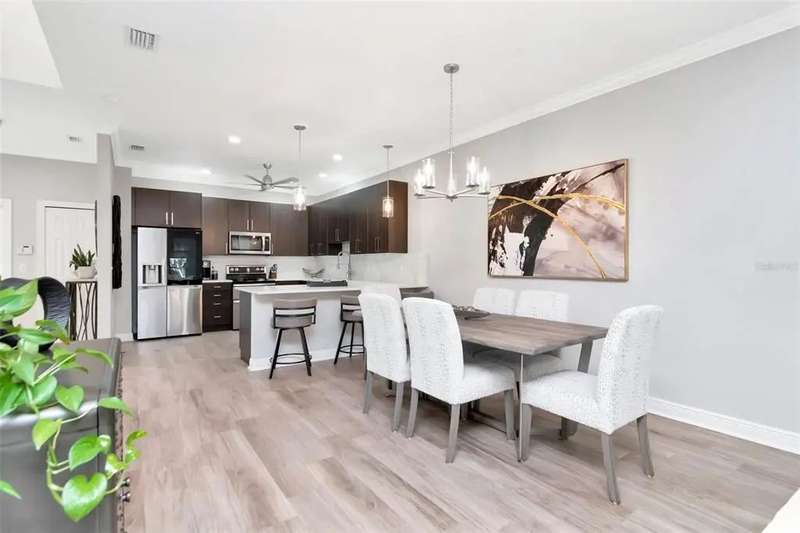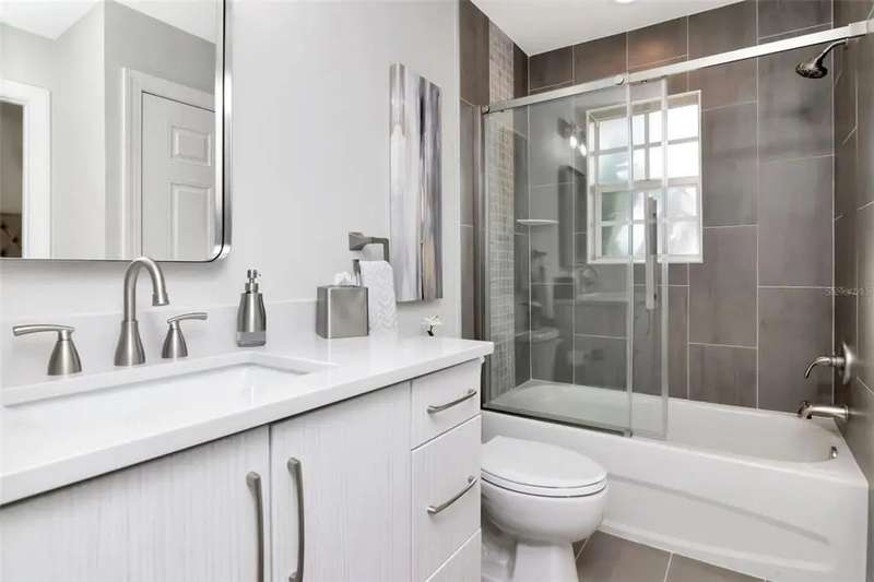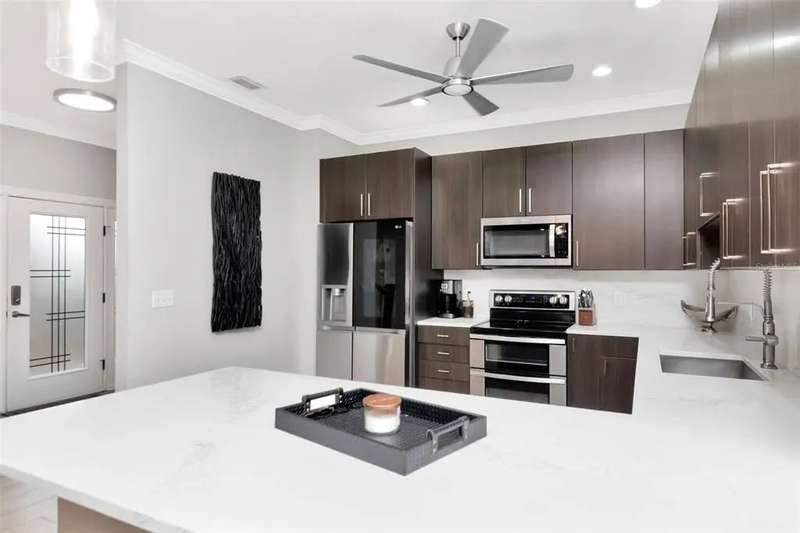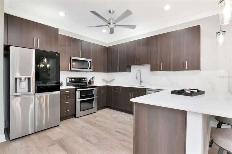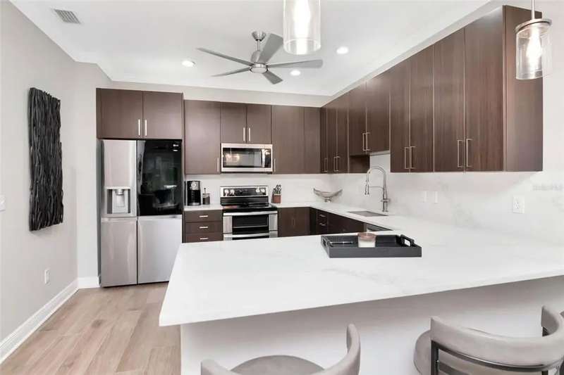 Welcome HOME to this absolutely fabulous, completely updated, designer done end unit in the private, gated Villas of Carillon! Thoughtfully updated, this unit effortlessly manages to to blend sleek and modern with warm and inviting. The attention to detail is apparent throughout the home. This two-story residence offers comfort, privacy, and modern style in one of St. Petersburg’s most desirable gated communities. The first floor features a bright spacious kitchen with quartz countertops and sleek modern European style cabinetry. The kitchen opens to a generous living and dining space, creating a seamless flow for everyday living and entertaining. A screened back porch provides the perfect spot to relax and enjoy the peaceful surroundings. Upstairs, you’ll find three bedrooms, including a primary suite with two separate walk-in closets, an updated en suite bath, and a private balcony overlooking the pond and wooded area. The two additional bedrooms share a second fully updated bath. The laundry room is conveniently located on the second level. Additional highlights include a two-car attached garage with built-in shelving. The Villas of Carillon community offers a pool, clubhouse, and scenic bike and nature paths. Conveniently located near downtown St. Petersburg, Tampa, and both airports, the beaches, shopping and entertainment.