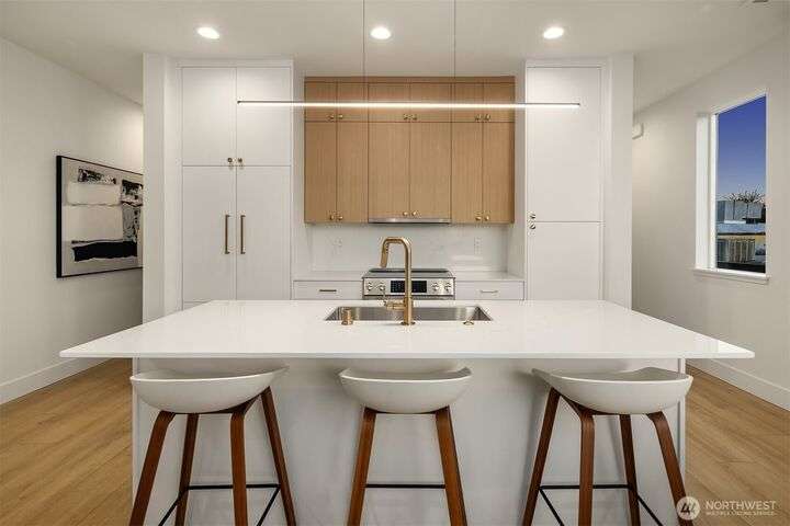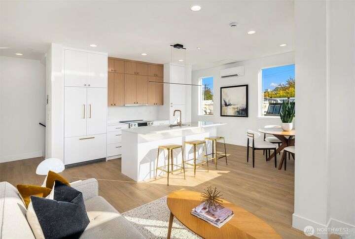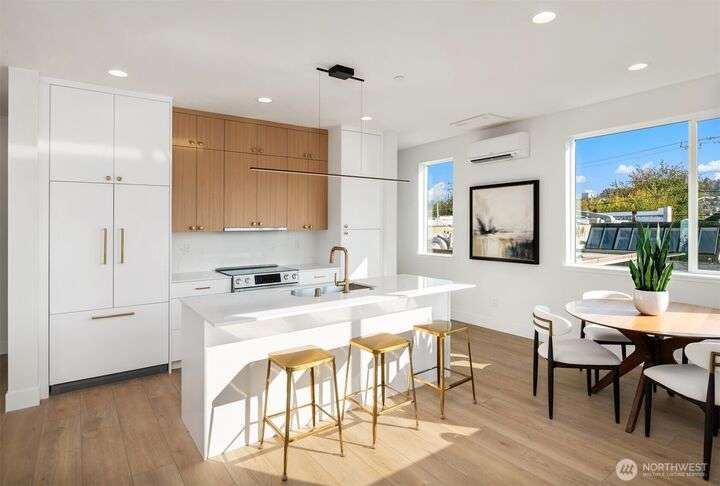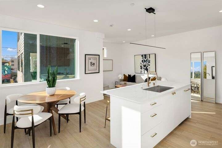 Acclaimed developer Halverson Design Build presents a classic New York City-style collection of residences, each featuring rare self-contained apartments on the first floors, ideally suited for rental, guest quarters, home offices, or live/work spaces. Modern design + a thoughtful layout highlight this sun-drenched Fremont townhome. Chef’s kitchen offers premier stainless appliances, quartz counters + designer finishes. Unwind in the luxurious primary bedroom suite with spa-like bath, which occupies the home’s entire top level. Step up to a private rooftop deck, an urban oasis with mesmerizing views + great potential for entertaining. Vibrant, walkable neighborhood with great parks + dining.