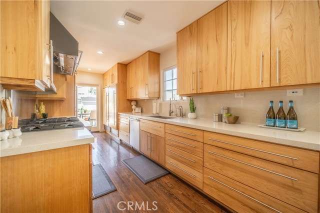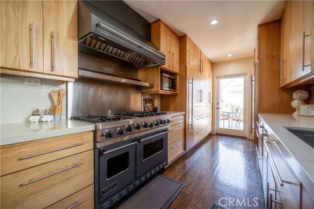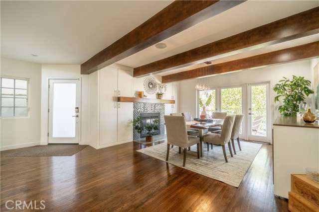 Nestled within the serene enclave of Naples Island, this exquisite residence embodies coastal elegance and timeless charm. Situated steps from the Long Beach Yacht Club and marinas on a rare oversized lot, with a recently installed new roof, this updated home offers an unparalleled blend of sophistication, comfort, and prime location. Stepping inside, you're greeted by the warmth of wood beams and the richness of hardwood floors that flow seamlessly throughout the space. The focal point of the living area is a magnificent fireplace, perfect for cozy evenings and gatherings with loved ones. Entertain with ease in the gourmet kitchen adorned with bright quartz countertops and equipped with premium amenities including a six-burner Viking stove, built-in Sub-Zeros (separate full-sized refrigerator and freezer). Rare blonde teak cabinets offer plentiful storage while a kitchen nook and breakfast bar provide casual dining options. The adjacent dining room features built-in cabinets, adding both style and functionality to the space. The residence boasts multiple living areas, including a family room ideal for relaxation as well as a generous front deck for indoor/outdoor living. The step-down den, complete with a convenient Murphy bed and a second fireplace, offers versatility for guests and/or a home office. Upgrades abound, showcasing meticulous attention to detail and modern luxury throughout. Retreat to the private primary suite, featuring a step-out balcony overlooking the backyard, designer accents, and a large soaking tub. The enormous walk-in closet provides generous space