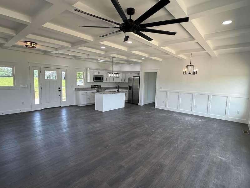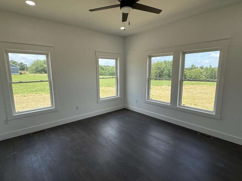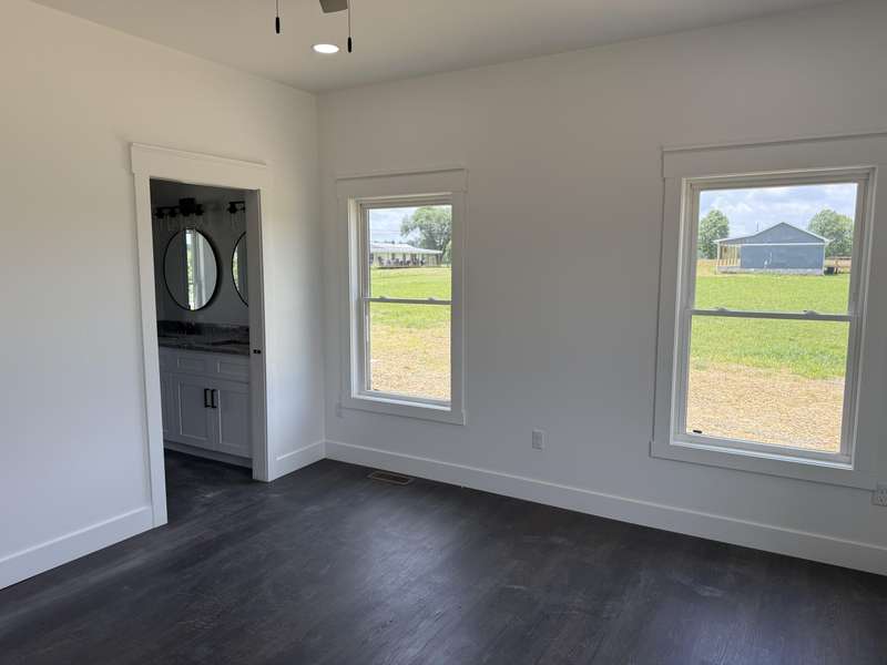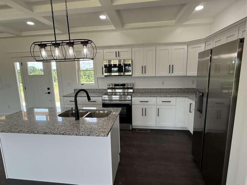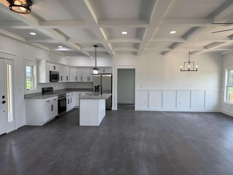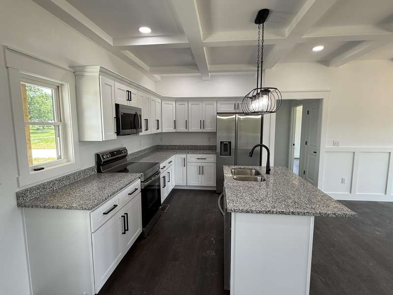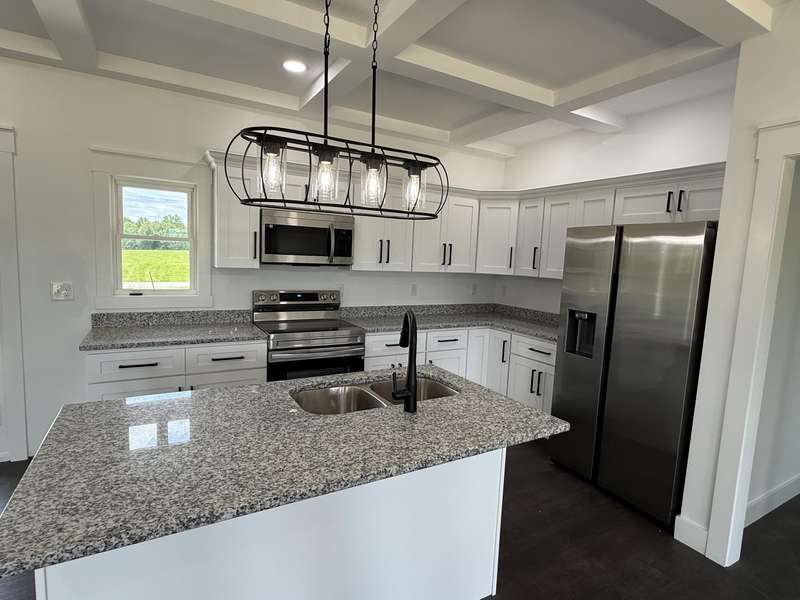 Step into comfort and modern elegance with this new construction home, perfectly situated on a 2.5-acre lot that gently slopes down to a serene creek at the rear of the property. This 3-bedroom, 2-bath home blends thoughtful design with custom finishes and beauty. The open-concept main living area is highlighted by custom trim work on both the walls and ceilings, adding a touch of craftsmanship and visual interest throughout the space. The kitchen boasts gleaming stainless steel appliances, shaker-style cabinetry, and a large island with granite counter tops. The spacious primary suite includes a full ensuite bath and generous closet space, while the two additional bedrooms share a beautifully appointed second full bathroom. Downstairs, the full, unfinished basement is a blank canvas - already plumbed for an additional bathroom and featuring a garage door for easy access. Outside, enjoy ample room for gardening, recreation, or simply relaxing. The property extends all the way to a peaceful creek so you can enjoying the soothing sounds of water. With plenty of space and high-quality finishes this home offers the perfect blend of modern living and country charm.