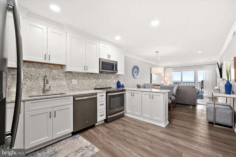 Wake up to breathtaking sunrises over the Atlantic from this stunning 2-bedroom, 2-bath luxury condo, completely reimagined from top to bottom. Set within a boutique, family-friendly garden building Sails Condos, this residence combines timeless design with modern coastal sophistication. Every detail has been carefully curated - from the elegant crown molding and recessed lighting to the designer flooring and custom finishes throughout. The gourmet kitchen is a chef's delight, featuring granite countertops, stainless steel appliances, and stylish cabinetry that opens seamlessly to the spacious living area. Walls of glass frame endless ocean views, filling the home with natural light and coastal serenity. The oceanfront primary suite offers a true retreat, complete with panoramic views, private balcony access, and a beautifully appointed en suite bath. Step outside onto your expansive private balcony and take in the soothing sounds of the waves - the perfect spot for morning coffee or evening cocktails. Located in sought-after North Ocean City, this intimate community is designed for relaxation and convenience. Enjoy easy access to the beach, local eateries, shopping, and family activities, all within walking distance. With its refined finishes, unbeatable views, and unmatched location, this oceanfront gem delivers the ultimate in luxury beach living. Drone photos coming !