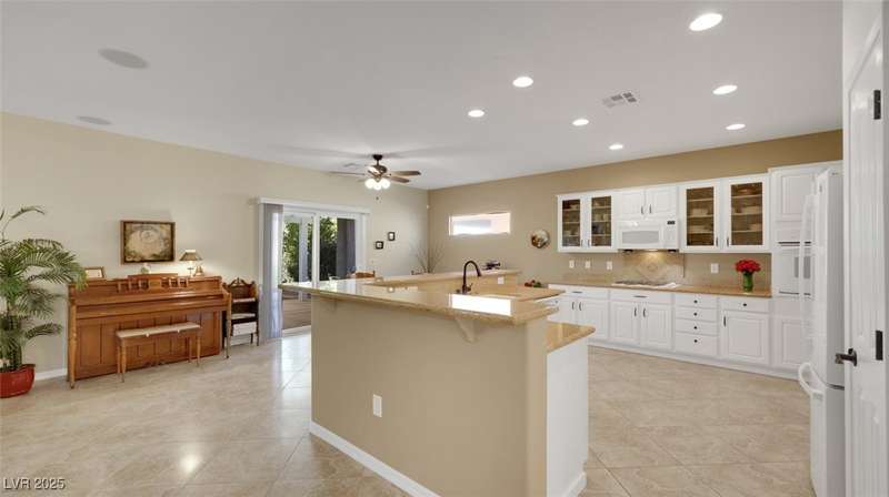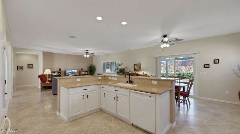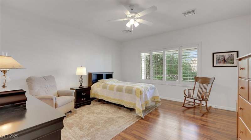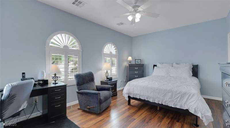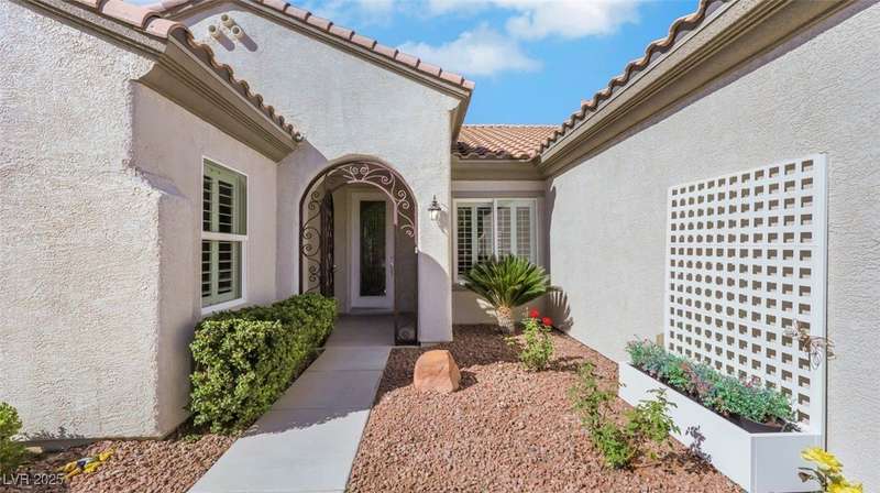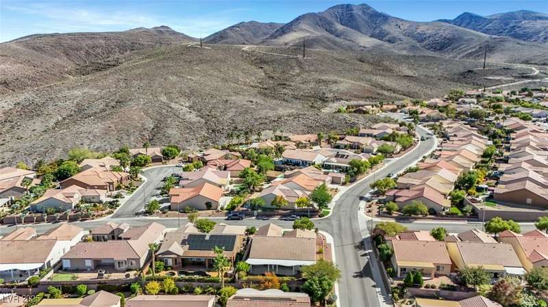 STUNNING.....2Bd, 2Ba (2012 sq ft) Jackson model located on a quiet interior street w/elevated lot & mountain views on all sides in the heart of Sun City Anthem (55+) located just 2-blocks from the Liberty Community Center. Curb appeals starts w/custom front walkway, beautiful turf landscapes, inviting front courtyard, custom iron gate, glass door entry & fresh exterior paint. Interior features include hard surface flooring & custom shutters throughout, fresh neutral paint colors, large great room w/surround sound system, new quartz countertops in bathrooms, granite island kitchen, multiple dining areas, oversized laundry & storage room, 2-car garage w/built cabinets & workbench. Private & elevated backyard features include full length custom patio cover adjoining large covered patio deck area w/custom BBQ island, iron fencing on all sides w/gates, beautiful turf & mature landscaping features and newer HVAC system. Low taxes & HOA fees. Entire home & yard are spotless & move-in ready.