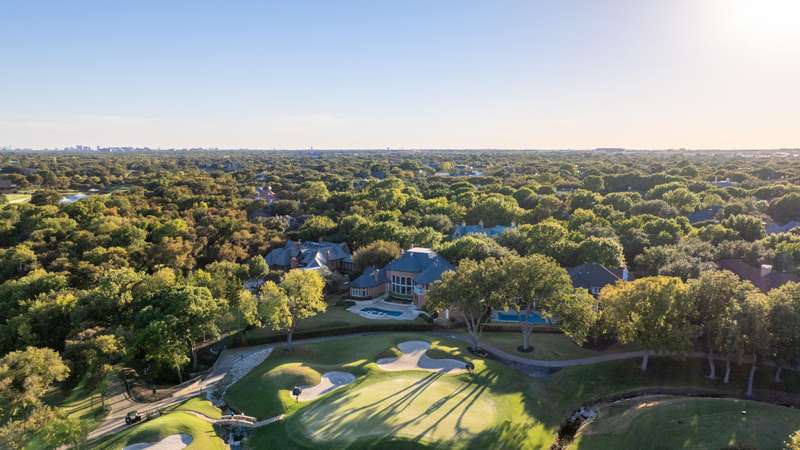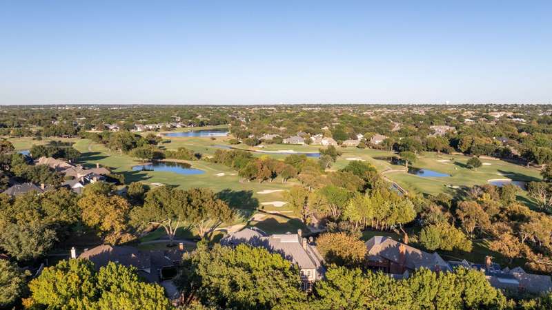 Tucked away on a quiet cul-de-sac surrounded by lush, mature trees, this breathtaking traditional estate offers more than 9,000 square feet of refined living overlooking the 12th fairway of the Gleneagles Queens Course. A circle drive, grand double-leaded glass doors, and manicured landscaping set the stage for the sophistication within. Inside, the home impresses with soaring ceilings, marble floors, and intricate crown molding. Sunlight floods through expansive windows framing sweeping views of the pool, creek, and rolling hills beyond. A dramatic curved staircase greets guests in the foyer, while the formal living and dining spaces are complemented by a butlers pantry with built-insperfect for entertaining in style. The den, featuring a stately wood coffered ceiling and wet bar, looks out to tranquil golf course views. A game room with a second wet bar offers the ideal space for relaxed gatherings. The gourmet kitchen is a true centerpiece with Thermador and GE Profile appliances, a massive island, a FiveStar commercial-grade 6-burner cooktop, double ovens and dishwashers, and new custom cabinetry throughout. The primary suite provides a sanctuary of luxury with a sitting area overlooking the greens, a cedar closet, and a spa-like bath with a freestanding tub, marble shower, dual vanities and toilets, and a bidet. An upstairs secondary suite includes one ideal for a secondary study and a second primary in-law suite with a balcony and fireplace. Beyond the interiors, enjoy a resort-style outdoor experience with an expansive pool deck, lush play yard, and full pool bath. Thoughtful details abound, from two front and two rear gated porte cocheres to a potting room workshop off the garage and a back staircase for convenience. An extraordinary blend of craftsmanship, comfort, and settingthis estate captures the essence of luxury golf course living in one of North Texass most prestigious communities.