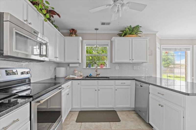 Beautiful home tucked at the end of a quiet cove on a spacious .34-acre lot. Offers 1,961 sq ft of well-designed living space with 3 bedrooms, 2 full baths, and a versatile bonus/game room upstairs?perfect as a home office, playroom, or media space. Enjoy a living area with a cozy gas fireplace, smooth ceilings, and custom wide plank hardwood floors. The primary suite features a spacious 15x14 bedroom, a large ensuite bath, and spacious closets. The kitchen boasts granite countertops, a mosaic tile backsplash, and plenty of prep space. The home comes equipped with a dining area and separate coffee/breakfast space. Both bathrooms include granite vanities and stylish finishes. Step outside to a private, fenced backyard with a large patio?ideal for relaxing or entertaining at the end of the day. A front-loading 2-car garage adds both convenience and curb appeal. This home offers the perfect blend of comfort, charm, and functionality.