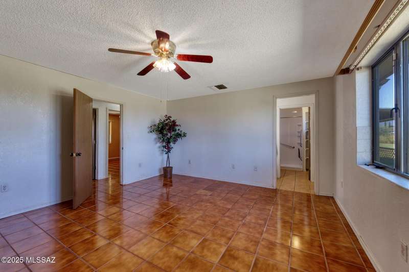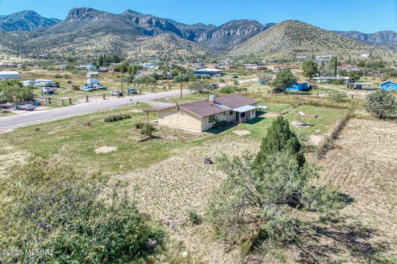 Spacious 3BD/2BA home offering 2,386 sq. ft. plus a gigantic bonus room perfect for a game room, rec room, or den! The front covered porch is huge. Step into the large living space and dining area. Enjoy a fabulous kitchen with plenty of cabinet and counter space for cooking and baking! The primary suite is spacious with a large closet and hosts a fantastic bathroom design which separates vanity space and the bathroom hosting a big walk-in shower and built-in shelves. Big indoor laundry room w/room for storage, clothes racks or more. Wonderful tile throughout! Even a tile-floored back patio. Outdoor living shines with a lush lawn, plenty of space for an RV, shop, or garden, on over an acre. Country living at its best beneath the Huachuca Mountainsa''yet minutes from town amenities!
