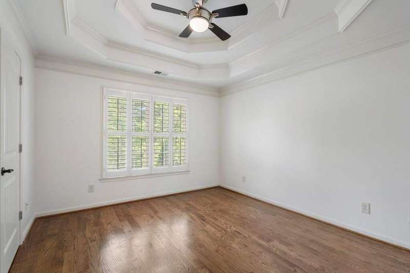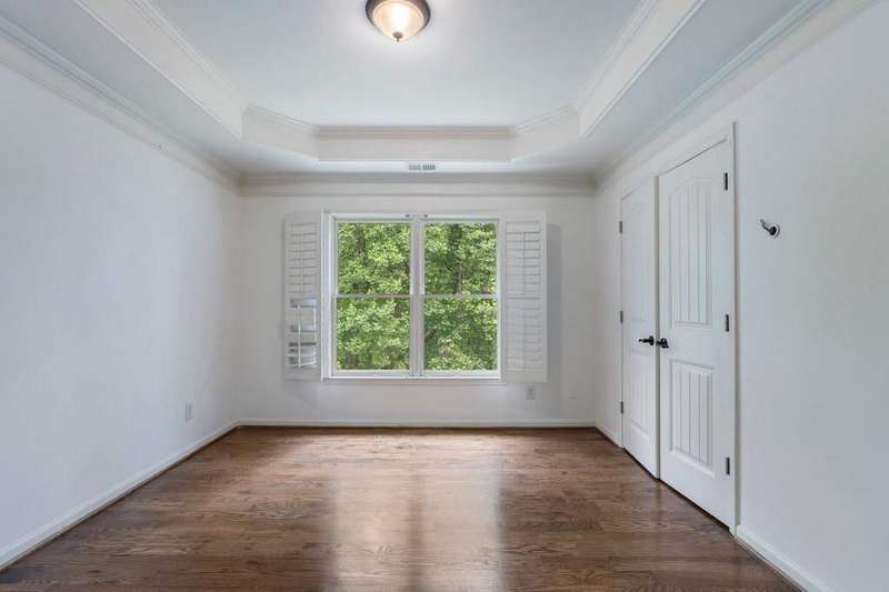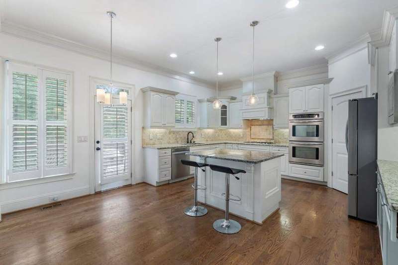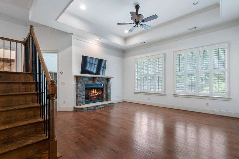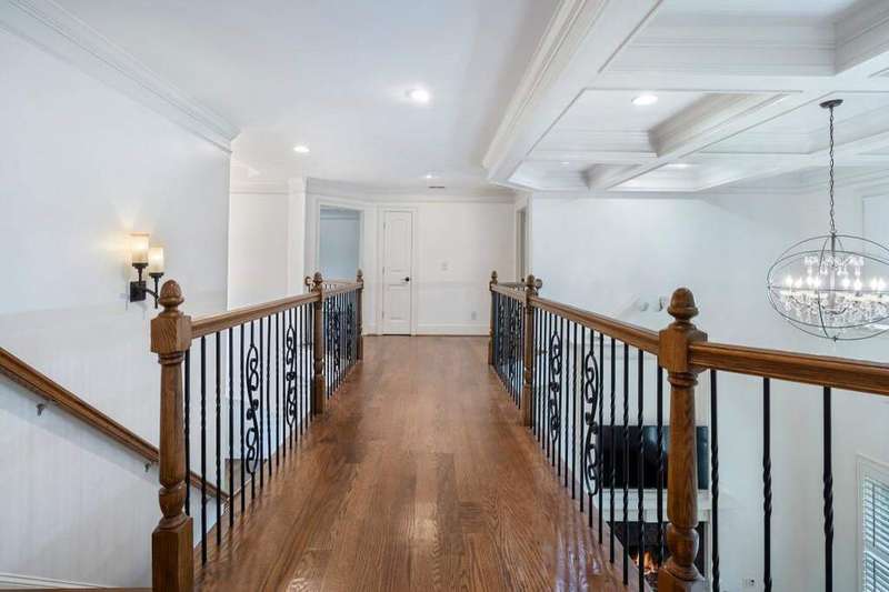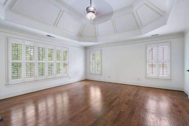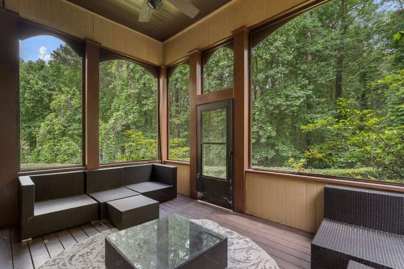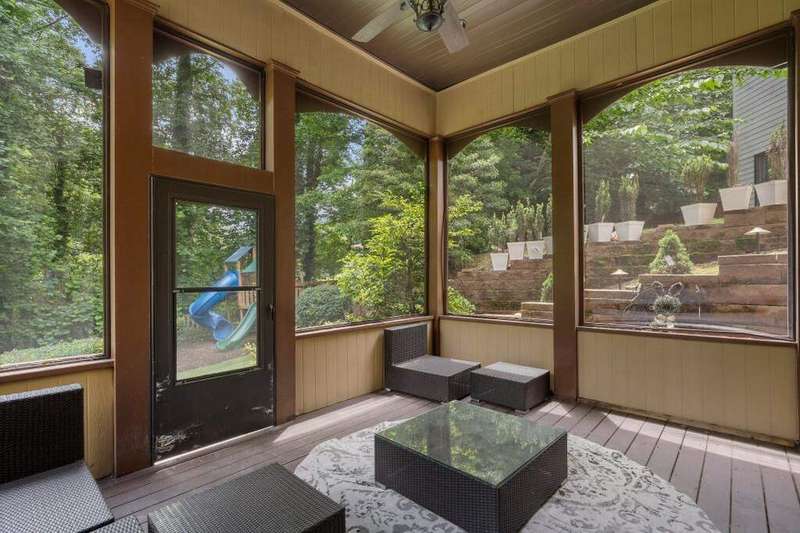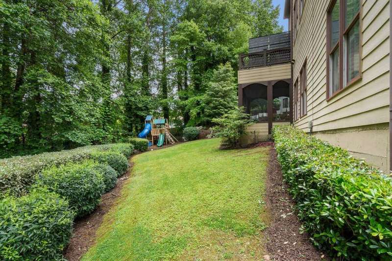 Best value in East Cobb - fresh interiors on this gorgeous Builder's Home in Chastain Ridge Neighborhood in East Cobb. Nestled in a quiet cul de sac, this home boasts an impressive open floorplan with soaring coffered ceilings. Light and bright, updated kitchen looks out to huge fireside den. Huge windows allow for natural light that flows throughout the home. This home has tons of upgrades like updated lighting, custom plantation shutters on all windows, hardwoods on all floors throughout, and a terrace level that will knock your socks off. Upstairs you'll find spacious bedrooms with walk in closets for tons of storage space.Primary suite has vaulted ceilings, huge bath with walk in closet and double vanities. Bedroom or office on main floor. Walk out from eat-in kitchen with island to beautiful deck overlooking the lush green backyard with playset, perfect for your morning cup of coffee. You'll find the terrace level of your dreams with high ceilings and a bar with icemaker and TV overlooking another fireside den and open to screened porch and includes infrared sauna. Truly a place for everything you could ever need. Two car garage includes storage shelving perfect for keeping tidy. Hot location close to restaurants, shopping, parks and more! Don't miss this special home!