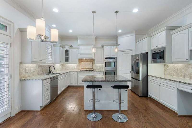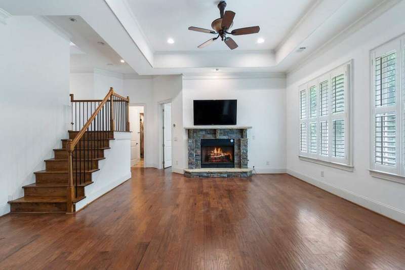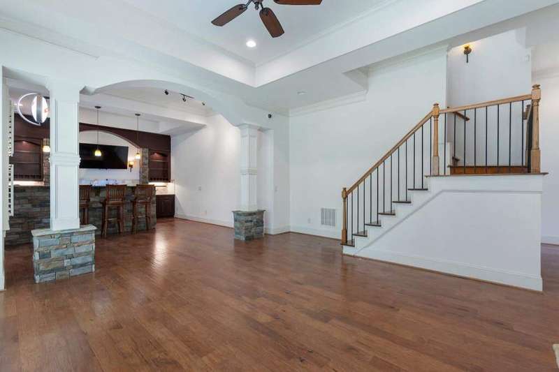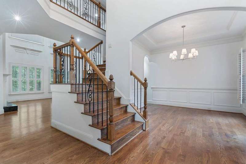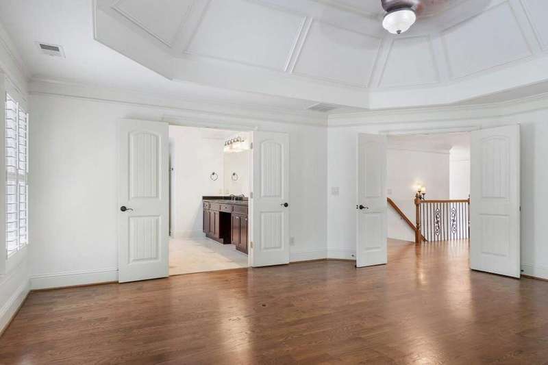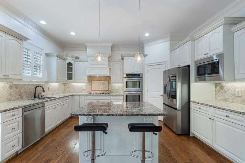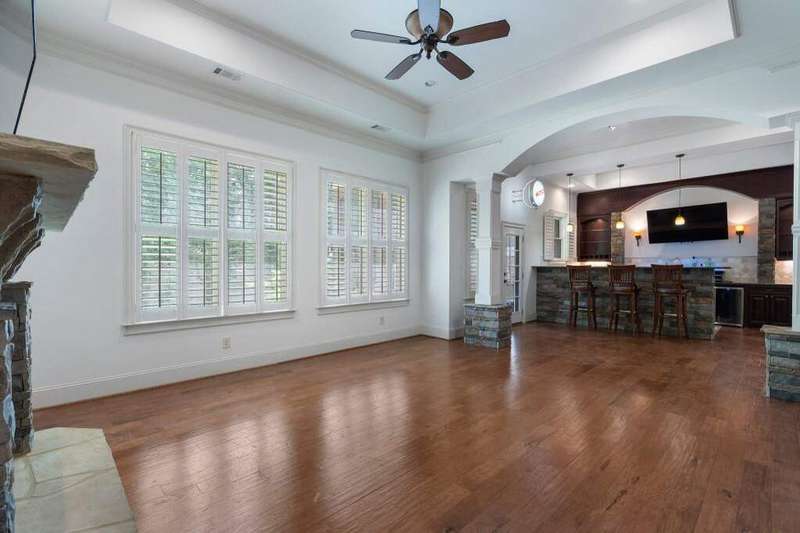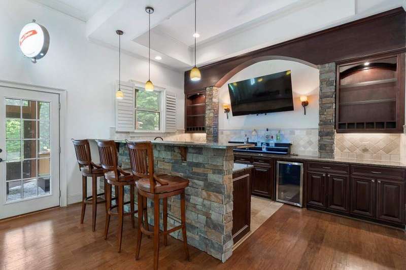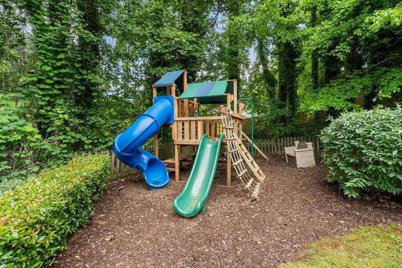 Best value in East Cobb - fresh interiors on this gorgeous Builder's Home in Chastain Ridge Neighborhood in East Cobb. Nestled in a quiet cul de sac, this home boasts an impressive open floorplan with soaring coffered ceilings. Light and bright, updated kitchen looks out to huge fireside den. Huge windows allow for natural light that flows throughout the home. This home has tons of upgrades like updated lighting, custom plantation shutters on all windows, hardwoods on all floors throughout, and a terrace level that will knock your socks off. Upstairs you'll find spacious bedrooms with walk in closets for tons of storage space.Primary suite has vaulted ceilings, huge bath with walk in closet and double vanities. Bedroom or office on main floor. Walk out from eat-in kitchen with island to beautiful deck overlooking the lush green backyard with playset, perfect for your morning cup of coffee. You'll find the terrace level of your dreams with high ceilings and a bar with icemaker and TV overlooking another fireside den and open to screened porch and includes infrared sauna. Truly a place for everything you could ever need. Two car garage includes storage shelving perfect for keeping tidy. Hot location close to restaurants, shopping, parks and more! Don't miss this special home!