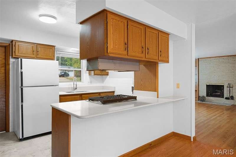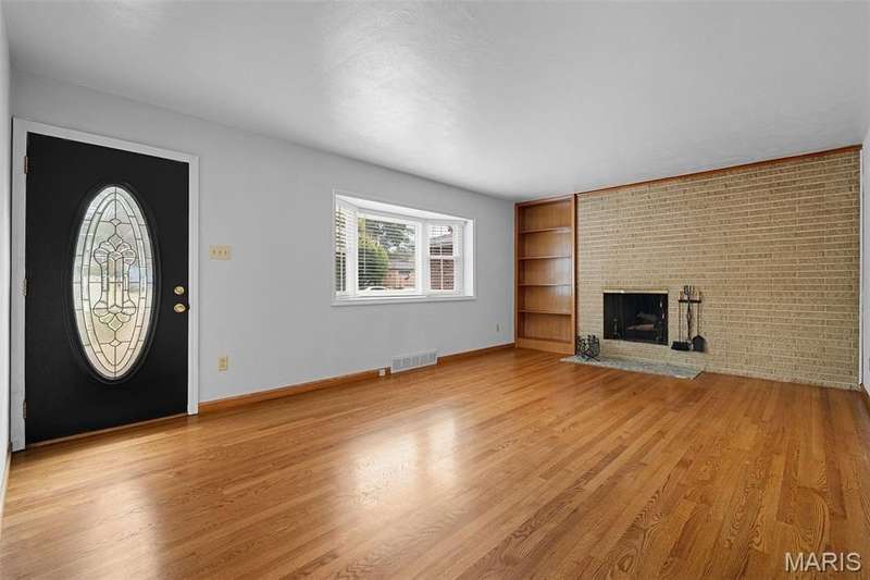 Welcome to this classic brick ranch in the coveted Grant Haven neighborhood, served by award-winning Lindbergh Schools. This beautifully maintained 3 bedroom, 2 bath charmer offers timeless appeal at every turn. Inside you'll find gleaming hardwood floors throughout. The spacious living room features a cozy wood-burning fireplace and built-in bookcases that add both character and function. The kitchen offers solid-surface Corian countertops, classic cabinetry and a breakfast bar. From the dining room, step outside to a beautiful patio overlooking a backyard that backs to trees — the perfect setting for morning coffee, summer barbecues, or quiet evenings outdoors. You'll love the divided floor plan and peace of mind that comes from newer roof (2022). All of this in a location that can't be beat! You're just a short walk to Grant’s Trail for biking and jogging, Grant’s Farm for family fun and local history, and Whitecliff Park, home to the Crestwood Community Center with its pool, lazy river, and fitness center. A wonderful opportunity to enjoy comfort, character, and convenience in one of the area's most desirable neighborhoods!