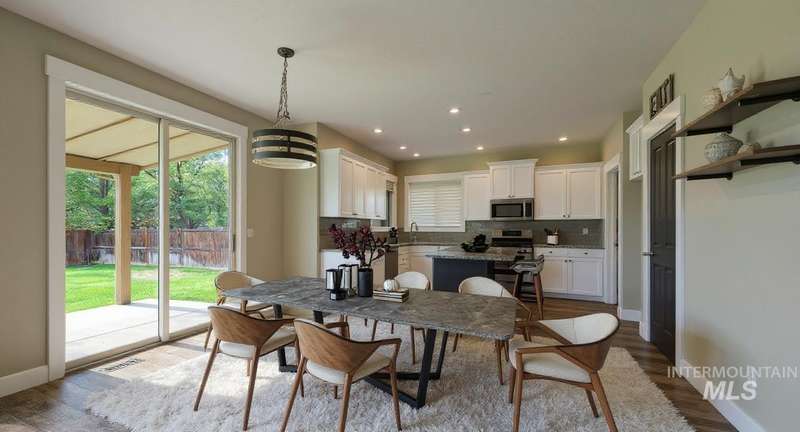 Live a charmed life in this beautifully updated two-story home, perfectly situated on a picturesque, tree-lined street in the heart of Heritage Commons—just steps from the community pool and clubhouse. This spacious 4-bedroom (or 3-bed + bonus), 2.5-bath home offers 2,443 square feet of thoughtfully designed living space and has been recently remodeled with a stunning new kitchen, refreshed bathrooms that display amazing stone surfaces, and stylish tile flooring that mirrors the warmth and texture of hand-hewn wood planks. The versatile floor plan offers room for everyone, with flexible living areas ideal for entertaining, working from home, or simply relaxing in comfort, plus a large patio overlooking a large backyard. Enjoy living in one of Meridian’s most sought-after neighborhoods, featuring a large central park, clubhouse, pool, and a calendar full of beloved community events like egg hunts, 4th of July parades, fall festivals, and more. Some photos are virtually staged to help envision the potential.