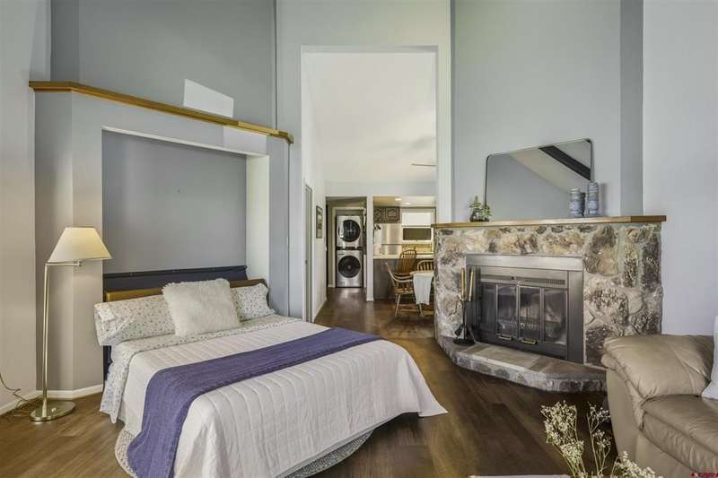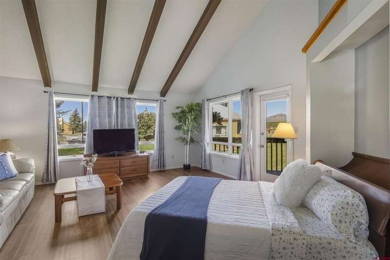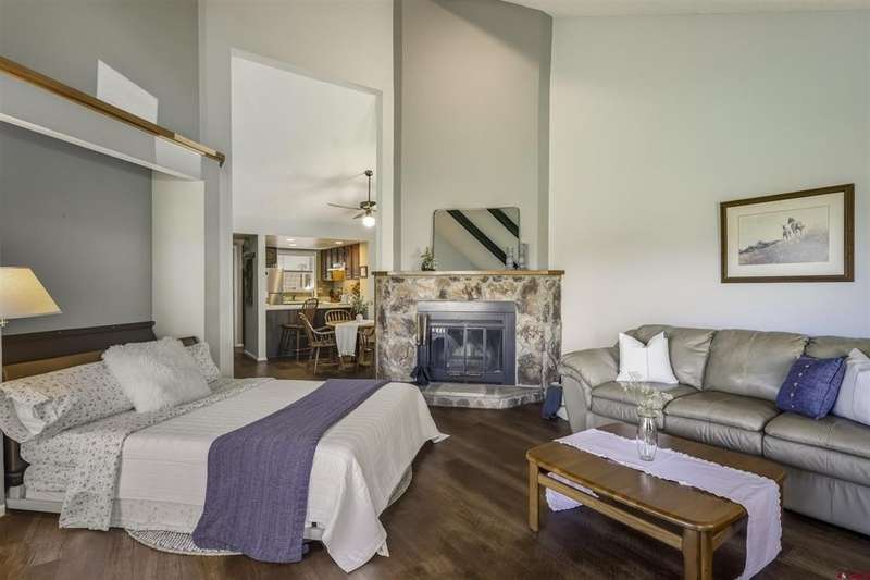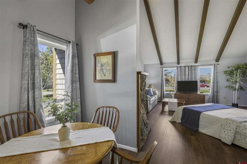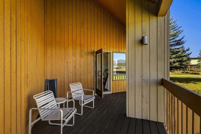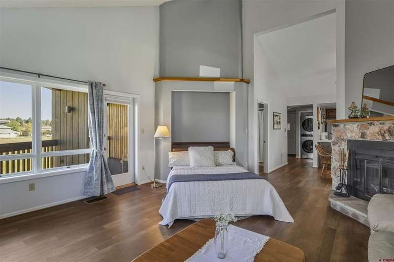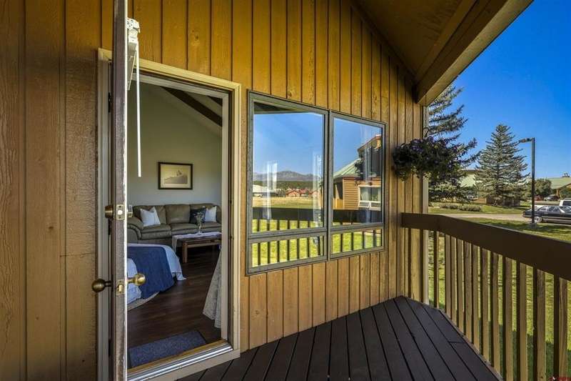 Kimberly Brown, Galles Properties, C: 970-749-3849, Kim@GallesProperties.com, www.crenmls.com: Studio Bliss-Stylish and affordable turnkey furnished escape in Pagosa Springs CO! Move in ready soaring vaulted ceiling end unit spilling with natural light, sprawling private covered deck, unstoppable mountain views, and serenity! Located in the highly desired walkable Uptown Pagosa Lakes area, this ground-level unit is low-maintenance convenience with year-round maintained paved access. OG real wood burning natural moss rock fireplace, New LVP flooring and Stainless stackable laundry unit. Benefit from a low monthly HOA that includes water, sewer, trash, and all exterior maintenance, giving you lifestyle freedom and maximum enjoyment. As an owner in Pagosa Lakes, you can treat yourself to a membership at the fully staffed recreation center, fish, paddleboard, canoe, and kayak on the many lakes, navigate the bike and walking paths, and explore miles of forest trails. 27 holes at the Pagosa Springs golf course is right out your back door too! The world's deepest natural hot springs, shopping, restaurants, coffee spots, river activities, and more are just a five-minute drive away in historic Downtown Pagosa Springs. For amazing winter sports, Wolf Creek is an easy 30–45 minute drive on year-round maintained roads. The seller is offering a $5,000 credit for you to use as you wish. Ready to embark on your Pagosa adventure? This studio makes it easy! Schedule your showing today.