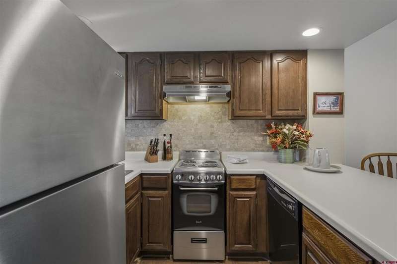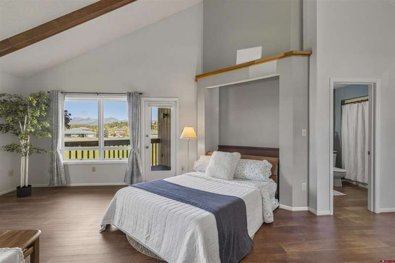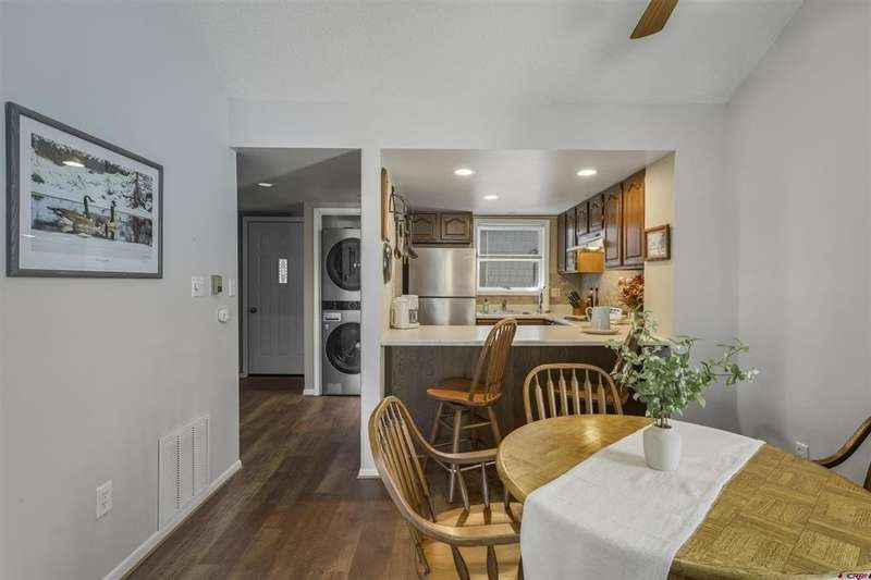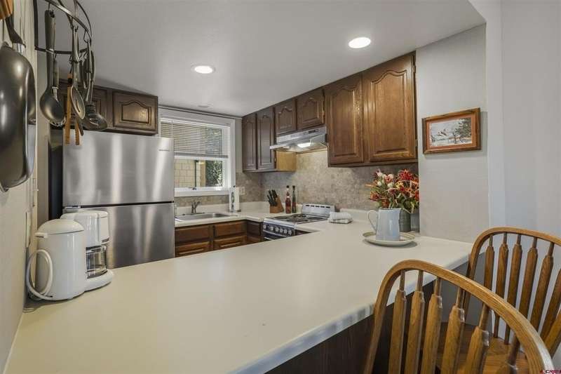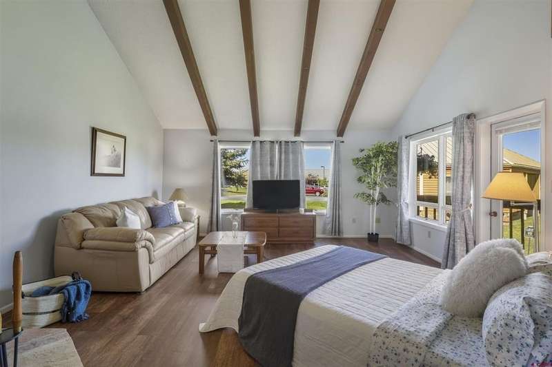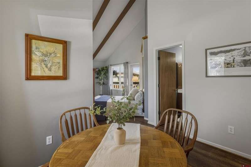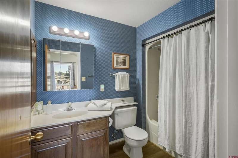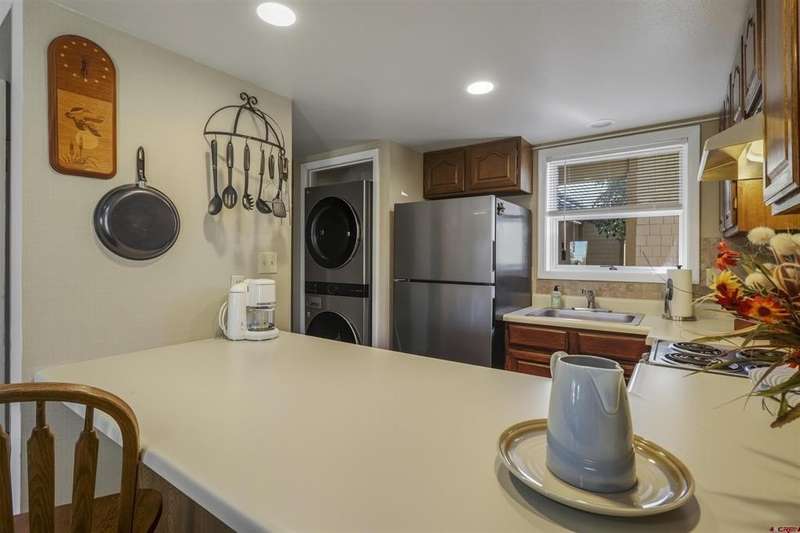 Kimberly Brown, Galles Properties, C: 970-749-3849, Kim@GallesProperties.com, www.crenmls.com: Studio Bliss-Stylish and affordable turnkey furnished escape in Pagosa Springs CO! Move in ready soaring vaulted ceiling end unit spilling with natural light, sprawling private covered deck, unstoppable mountain views, and serenity! Located in the highly desired walkable Uptown Pagosa Lakes area, this ground-level unit is low-maintenance convenience with year-round maintained paved access. OG real wood burning natural moss rock fireplace, New LVP flooring and Stainless stackable laundry unit. Benefit from a low monthly HOA that includes water, sewer, trash, and all exterior maintenance, giving you lifestyle freedom and maximum enjoyment. As an owner in Pagosa Lakes, you can treat yourself to a membership at the fully staffed recreation center, fish, paddleboard, canoe, and kayak on the many lakes, navigate the bike and walking paths, and explore miles of forest trails. 27 holes at the Pagosa Springs golf course is right out your back door too! The world's deepest natural hot springs, shopping, restaurants, coffee spots, river activities, and more are just a five-minute drive away in historic Downtown Pagosa Springs. For amazing winter sports, Wolf Creek is an easy 30–45 minute drive on year-round maintained roads. The seller is offering a $5,000 credit for you to use as you wish. Ready to embark on your Pagosa adventure? This studio makes it easy! Schedule your showing today.