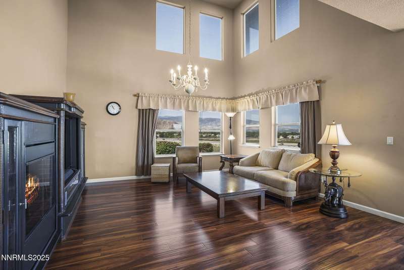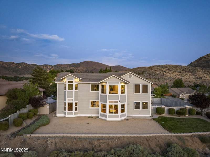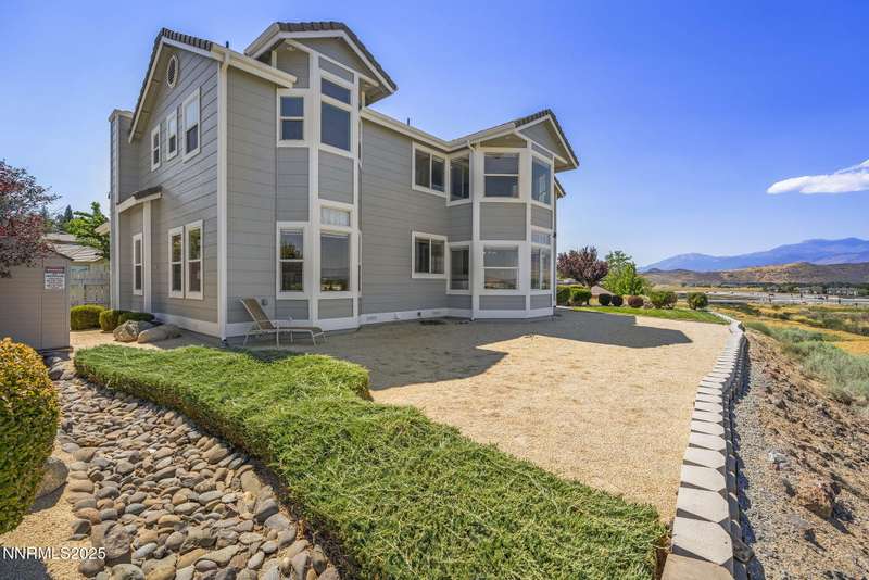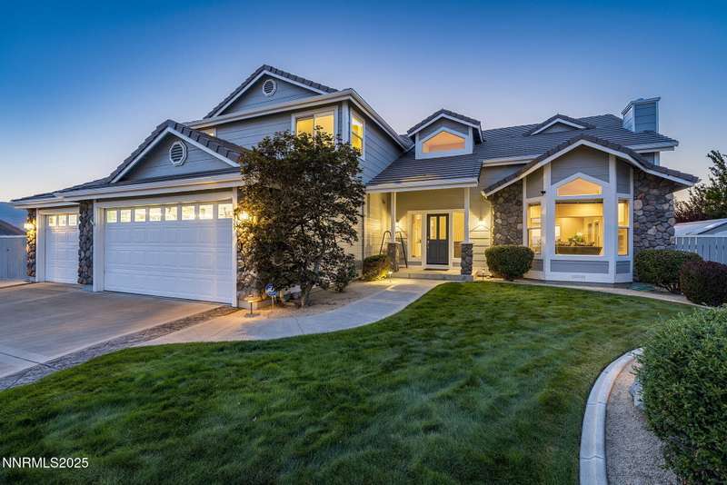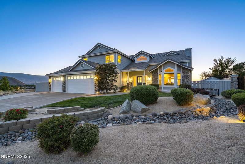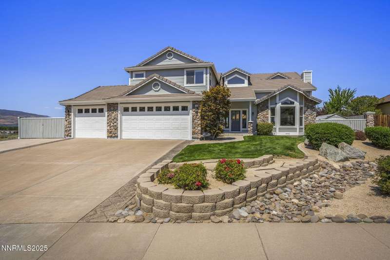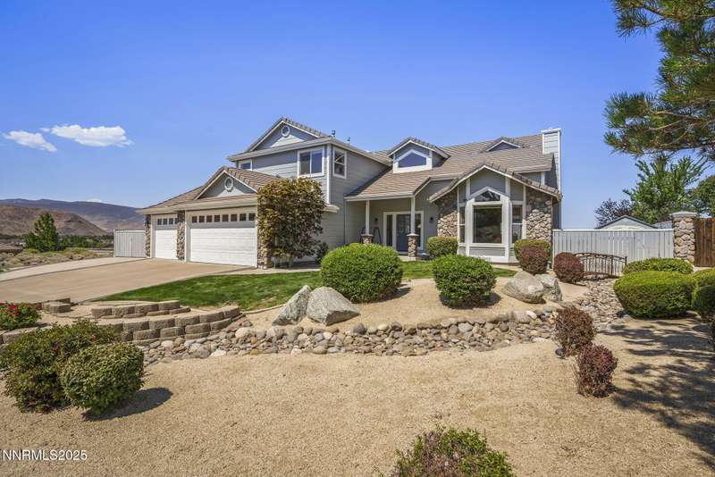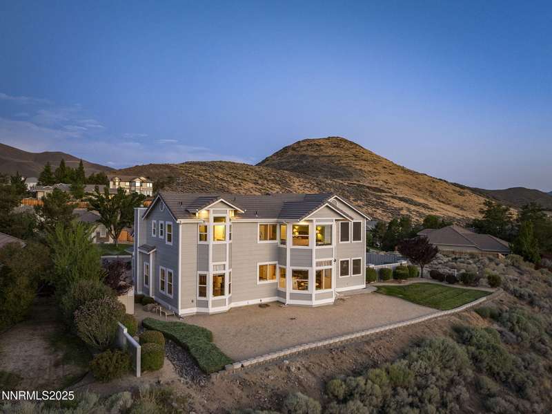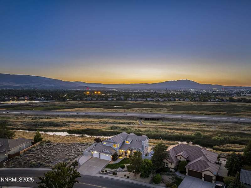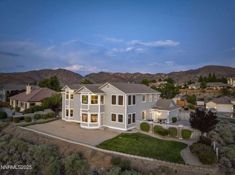Welcome to one of Rosewood Lake Estates' most captivating homes—perched on a hill with panoramic city and mountain views that will take your breath away. From sunrise to sunset, nearly every window frames a picture-perfect view, offering a daily reminder of why this is one of Reno's most desirable areas. Just down the street from Hidden Valley Golf Course and Country Club, this residence blends refined comfort with thoughtful design and effortless access to both Reno and Sparks. Step inside to find a meticulously maintained interior, intentionally crafted for both energy efficiency and beauty. Expansive windows flood the home with natural light, while dual-zone heating and cooling keep every space perfectly comfortable year-round. The engineered hardwood floors run seamlessly throughout, complementing the finishes and recent updates. The heart of the home is the kitchen—featuring brand-new appliances (all included), central vacuum system, and ample workspace for everyday cooking or entertaining. The formal dining room sets the stage for memorable gatherings, and the living room's gas log fireplace offers a cozy focal point. The spacious primary suite is a true retreat, offering sweeping views, a custom built-in closet system, a large jetted tub. An additional ensuite bedroom on the main level provides flexibility for guests or multi-generational living, while the remodeled bathrooms throughout the home add a fresh, modern feel. An oversized 26-foot, three-car garage with EV charging station offers plenty of space for vehicles, storage, or hobbies. Additional features include instant hot water with dual tanks, extra parking with a gated concrete pad for an RV or trailer, and a storage shed in the backyard. The HOA provides excellent amenities—including a pool, spa, clubhouse, tennis and basketball courts, a private park, and a walking trail. Grocery shopping, dining, and everyday conveniences are less than a mile away. This is more than a home—it's a lifestyle of comfort, convenience, and unmatched views, all in a location that perfectly balances privacy with accessibility.